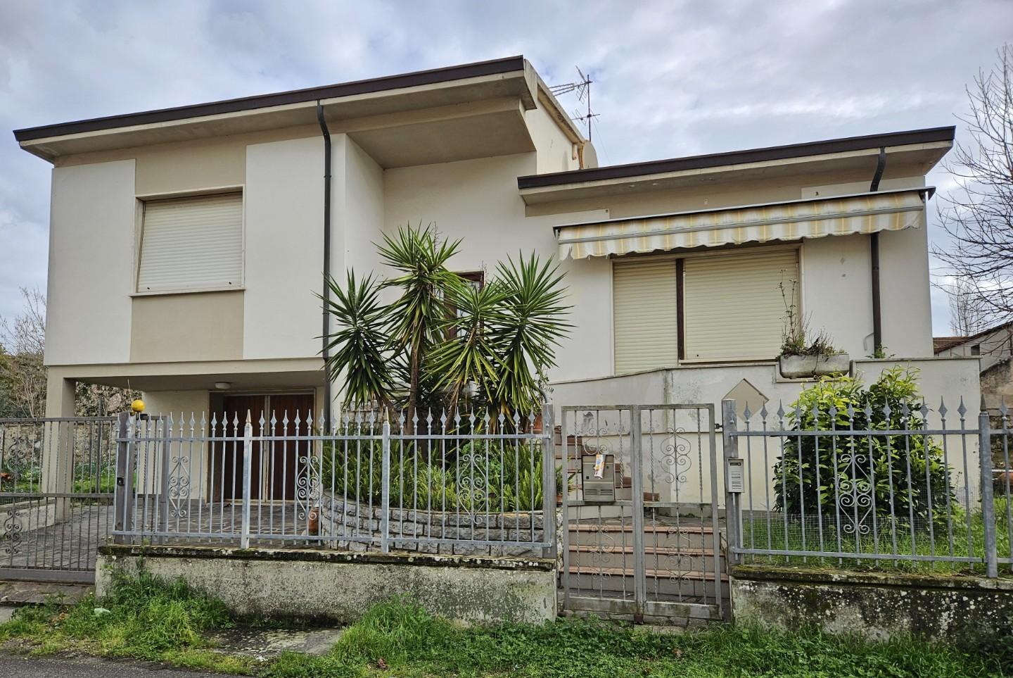 ***.*******.** 1582 - SAN GIORGIO - Villa singola costruita negli anni '70 con giardino privato su quattro lati, disposta su piani sfalsati tra loro collegati da scale interne e così composta: al piano terra due ampi locali di sgombero con bagnetto di servizio per complessivi 60 mq circa con altezza interna di circa mt. 2,10; al piano rialzato ingresso tradizionale con la zona giorno composta da salone e cucina abitabile con terrazzo e scala di servizio; al piano primo ed ultimo il reparto notte composto da due camere matrimoniali, una camera singola ed il bagno principale.