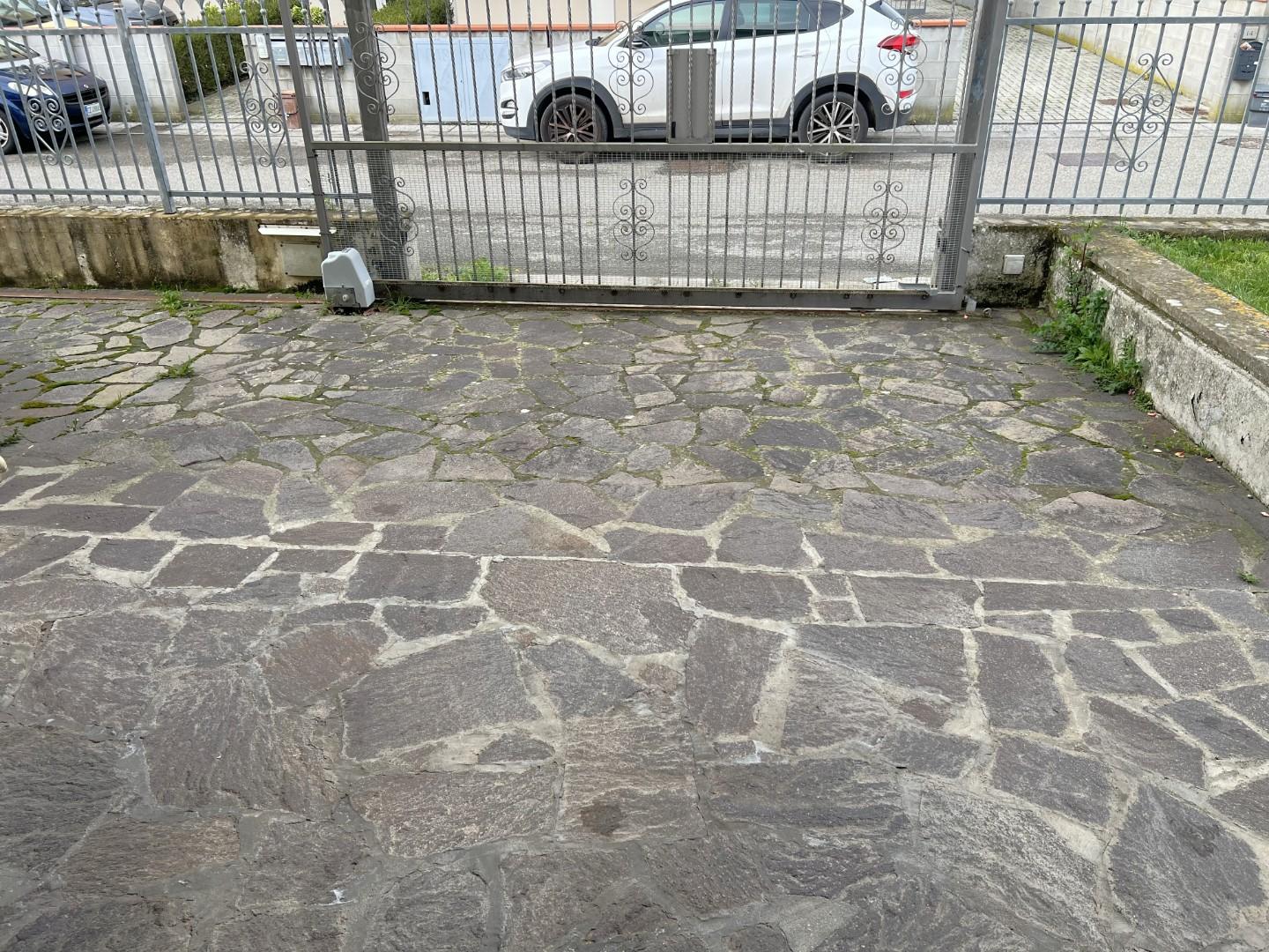 Corredata da giardino esterno in parte lastricato e con doppio accesso carrabile.