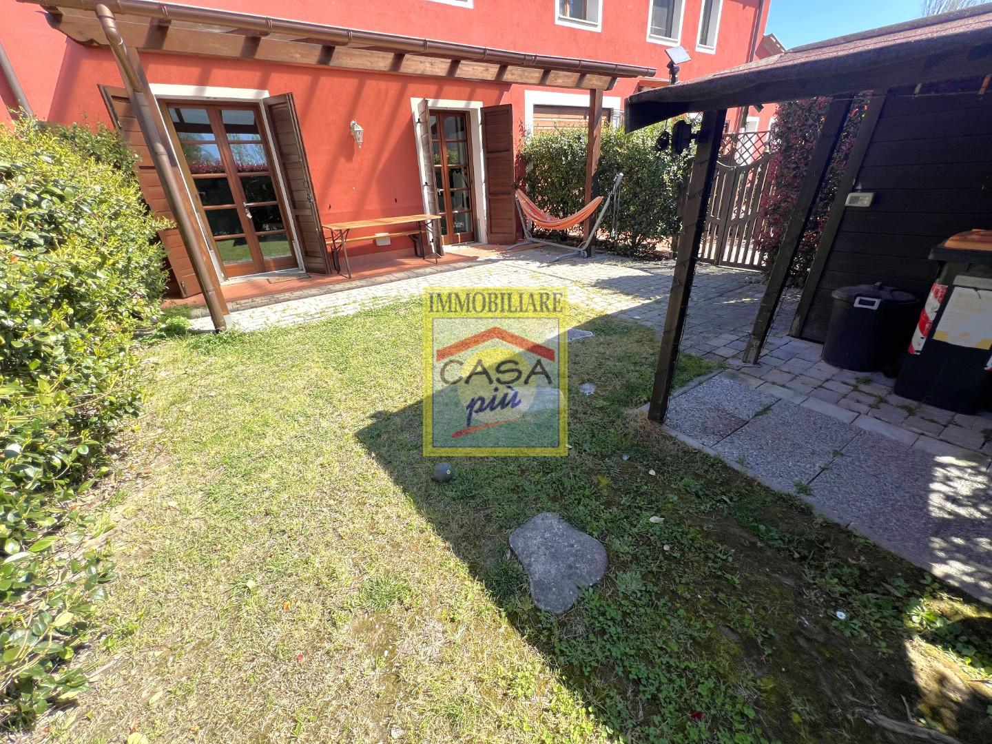 Sul fronte dell'abitazione con esposizione ben soleggiata a sud si trova il giardino privato recintato con siepe che garantisce totale privacy oltre ad una casetta in legno per ricovero attrezzi ed angolo stenditoio.