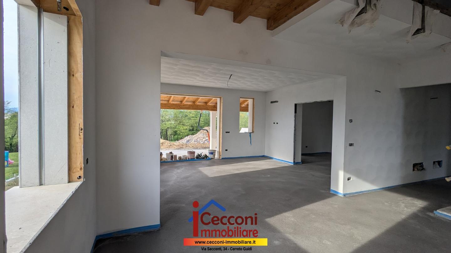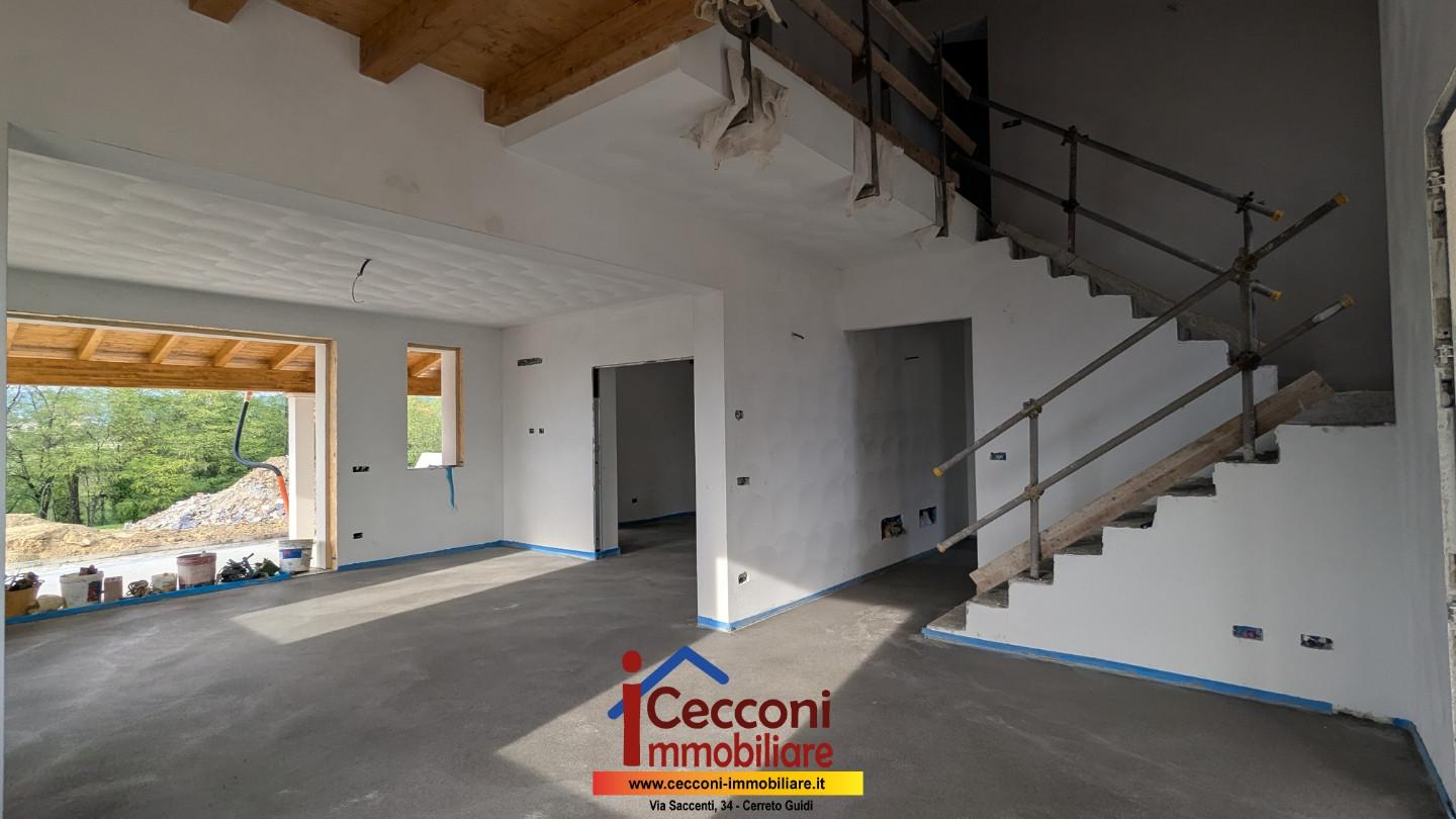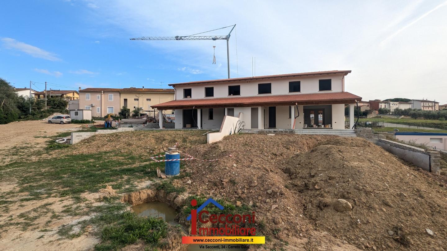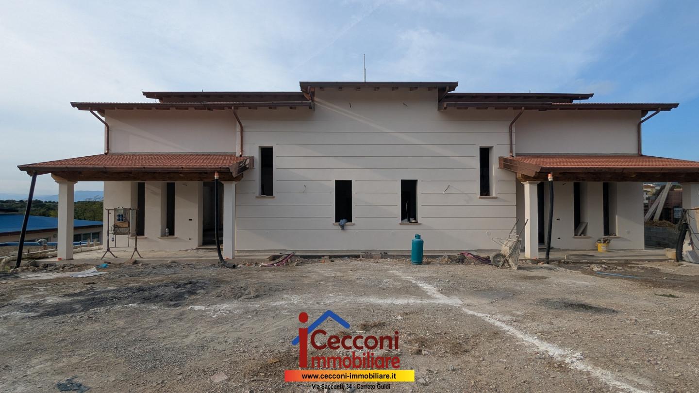 Le abitazioni, quasi terminate, sono composte da una zona giorno di circa 80 mq (divisa in salotto, cucina e zona pranzo) e bagno, al piano primo 3 camere e secondo bagno.