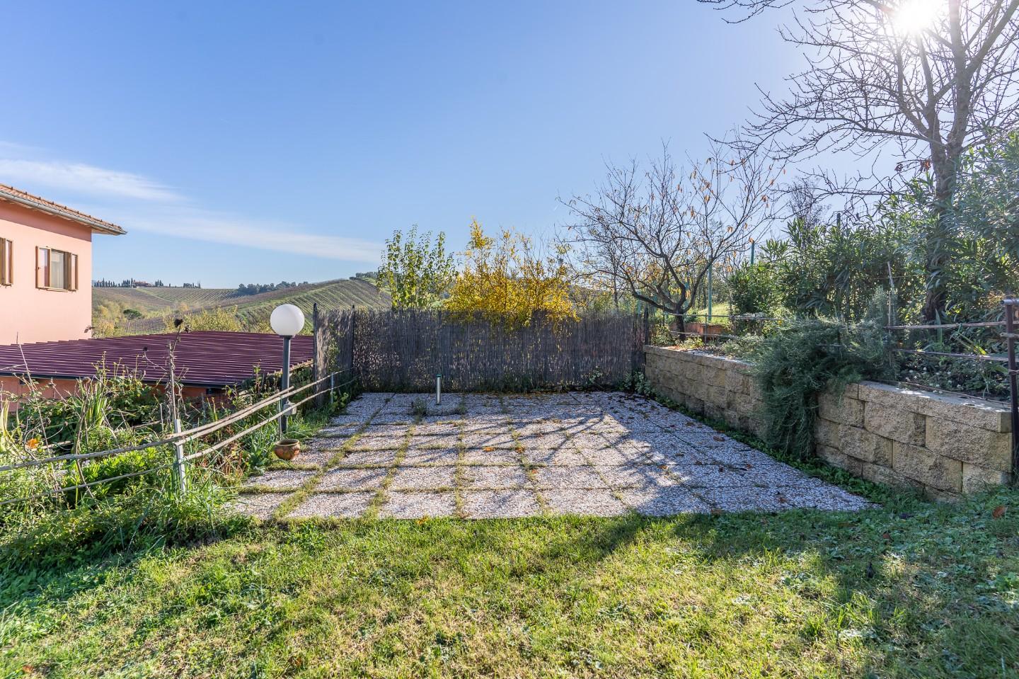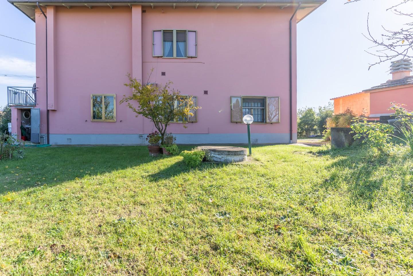 L'appartamento al piano terra ha una categoria catastale A/2 e una rendita catastale di Euro 520,33. I garage hanno una categoria catastale C/6 e una rendita catastale di Euro 66,93 e di Euro 184,07. L'appartamento al piano primo ha una categoria catastale A/2 e una rendita catastale di Euro 520,33. Il magazzino ha una categoria catastale C/2 e una rendita catastale di Euro 168,16. IL CONTESTO: Si tratta di una villa libera su 4 lati circondata dal suo giardino recintato (dotato di cancello elettrico). In una gradevole posizione di campagna, tranquillissima ma non isolata, e facilmente raggiungibile.