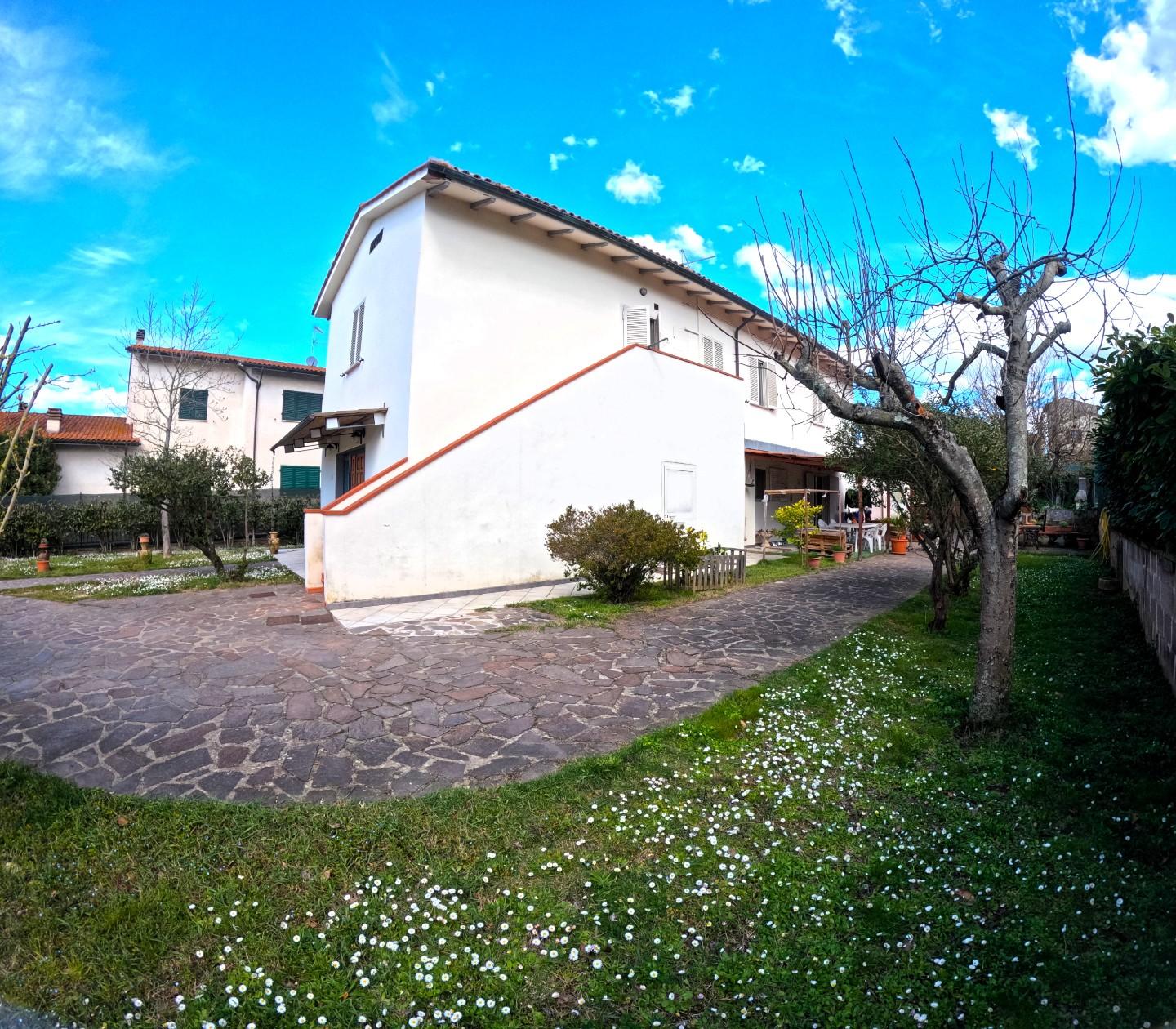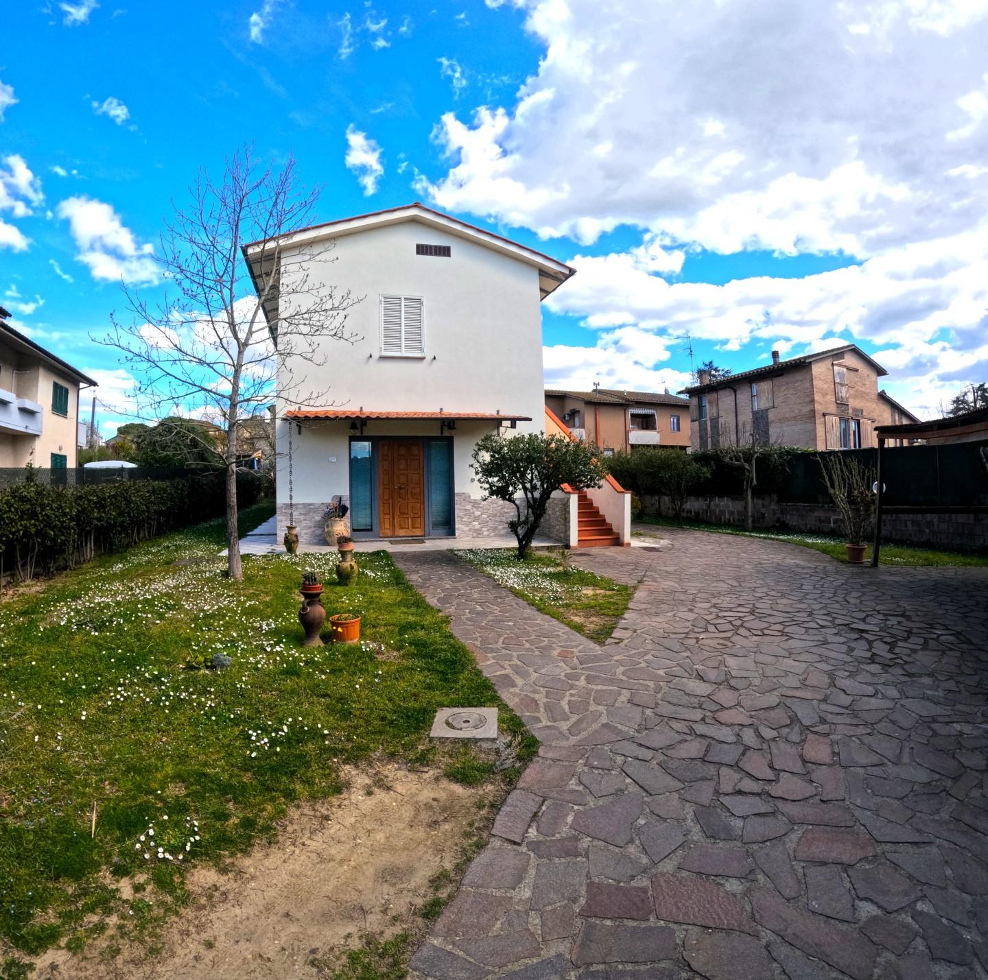 (possibile suddivisione in due appartamenti separati) Garage con piccolo annesso (78mq) Ampio giardino privato di circa 1500mq con tettoia per posti auto Riscaldamento a Pellet centralizzato.