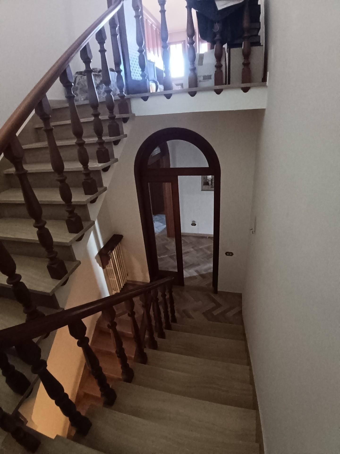 Tramite scala si accede al PIANO PRIMO di ca mq. 115,00 con le tre camere matrimoniali , bellissimo salone doppio angolare , balcone che gira attorno alla casa, servizio con anti-bagno e ripostiglio.