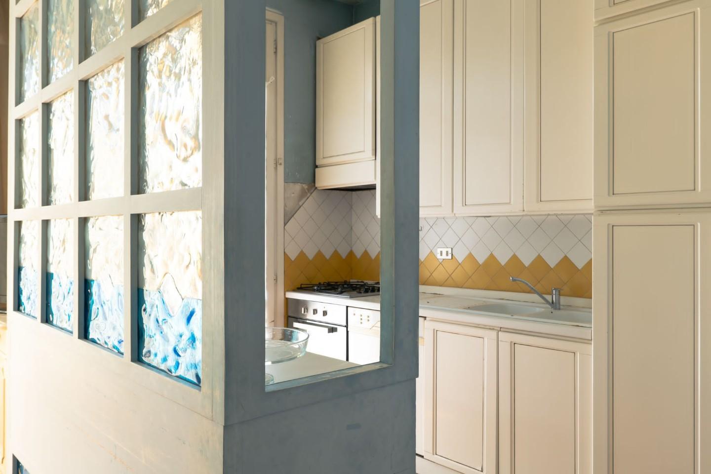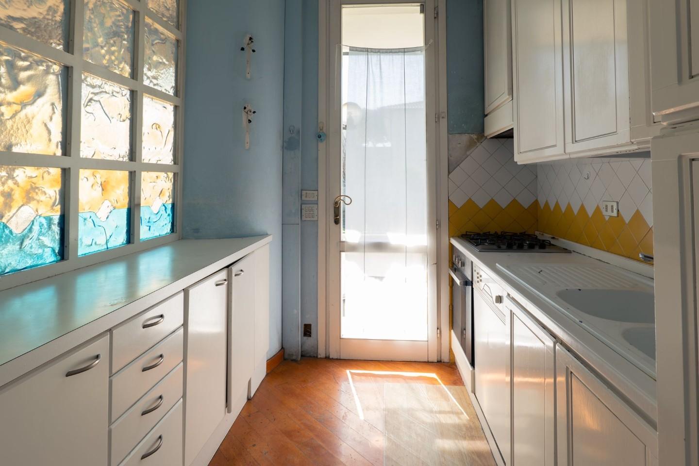 Piano Terreno rialzato - Ingresso ,ampio salone triplo, luminosissimo, con affaccio sul giardino, cucina abitabile e zona pranzo, camera e doppi servizi.