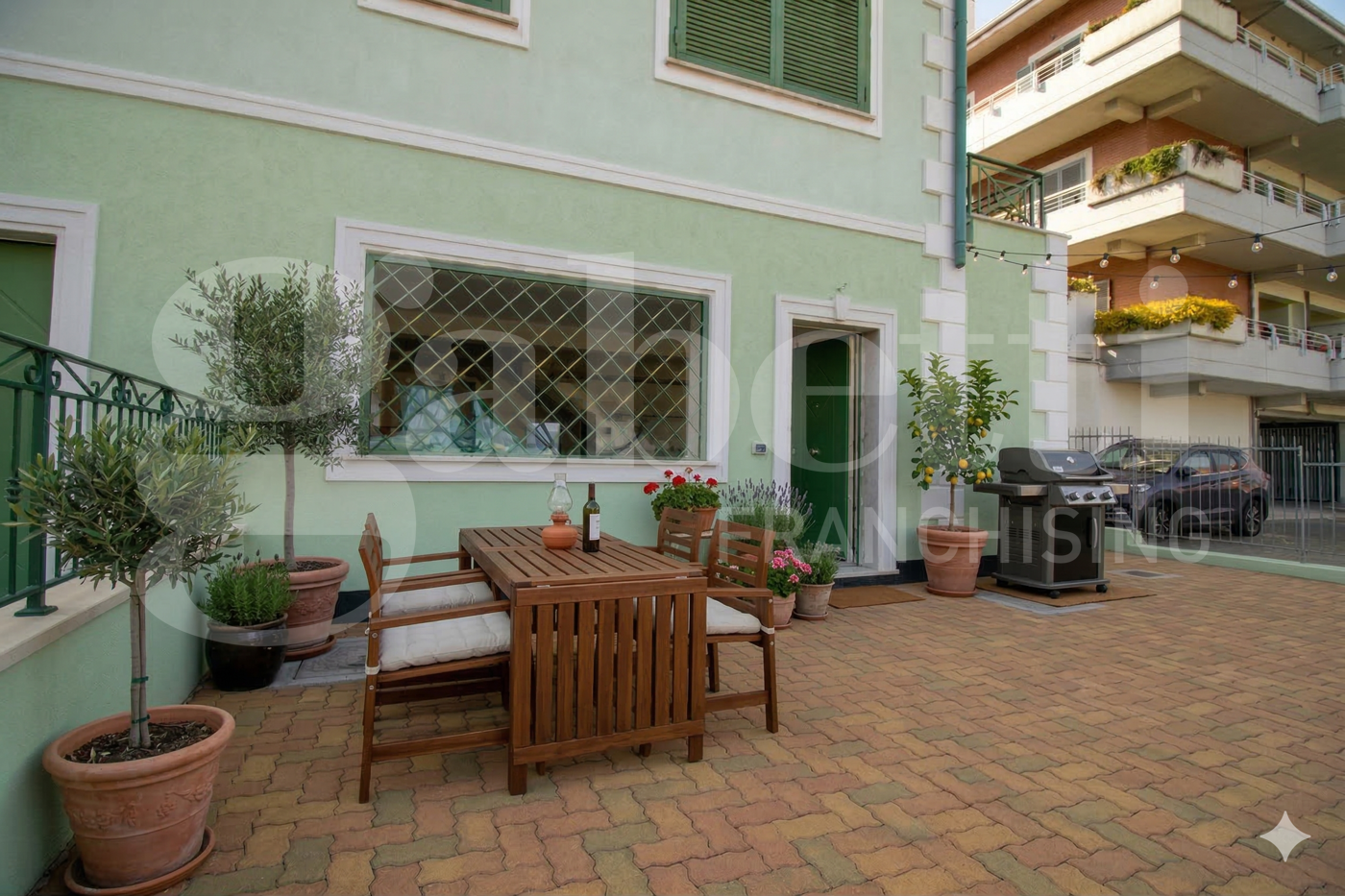 Il villino dispone, tra le altre cose, di grate/persiane in ferro, impianto fotovoltaico da 3 Kw. con batteria per l'accumulo da 5 Kw., esternamente coibentato con cappotto termico ed isolamento del tetto, riscaldamento a pavimento a pompa di calore.