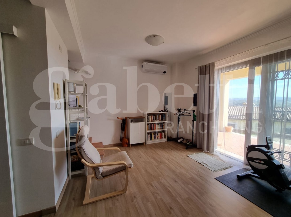 Inserita in un complesso residenziale del 2007, l'abitazione composta da: PT portico, zona giorno con camino, cucina abitabile con secondo accesso sulla corte esterna e bagno con doccia e ripostiglio/lavanderia - P1 disimpegno, camera matrimoniale con ampio terrazzo panoramico, cameretta, ripostiglio e bagno con vasca.