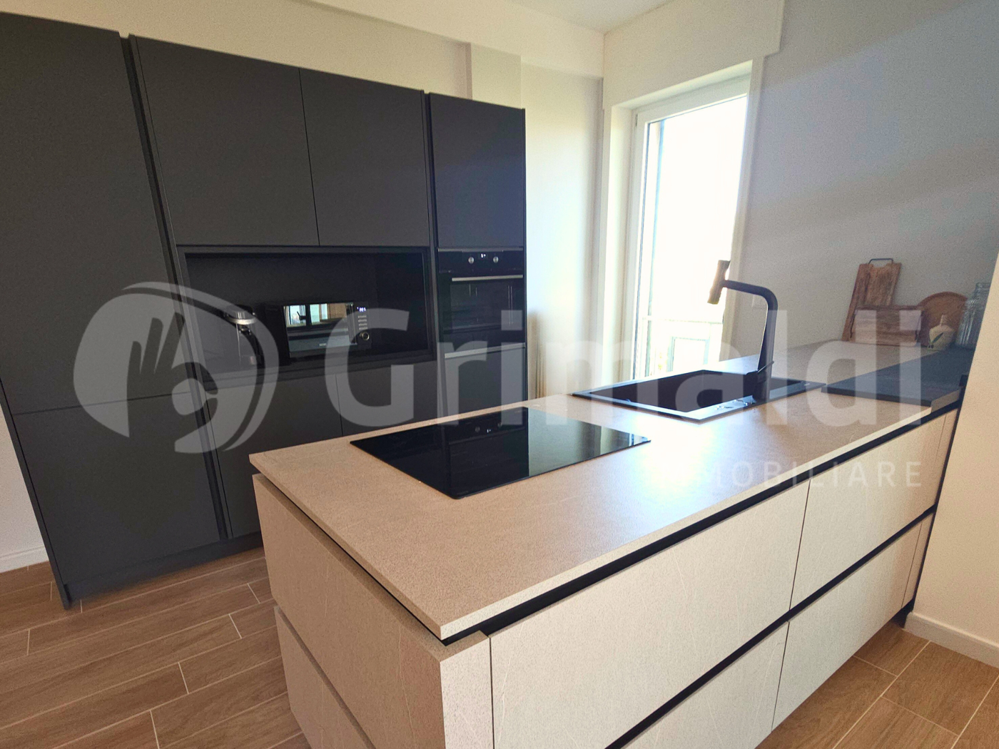 Allinterno troviamo: luminosissima zona living open space con ampie vetrate scorrevoli che conducono al panoramico terrazzo a livello, tre spaziose camere da letto, di cui due dotate di cabina armadio e una con bagno en suite, comoda lavanderia, perfetta per gestire al meglio gli spazi e le esigenze moderne.