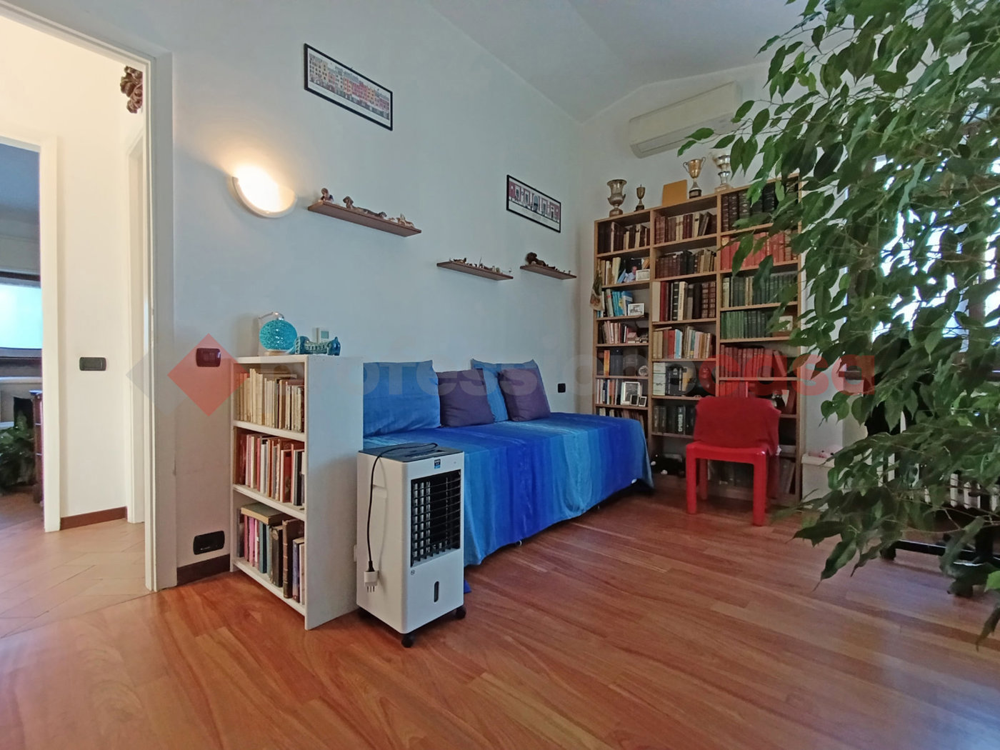 L'immobile sviluppato su una superficie abitabile di circa 90 mq tutta sul piano rialzato, dove troviamo un ingresso con armadi a muro, ampio soggiorno con finestre e porta finestra che affaccia sul terrazzino e sul giardino, cucina a vista, disimpegno verso la zona notte con due ampie camere ed il bagno rinnovato con box doccia.