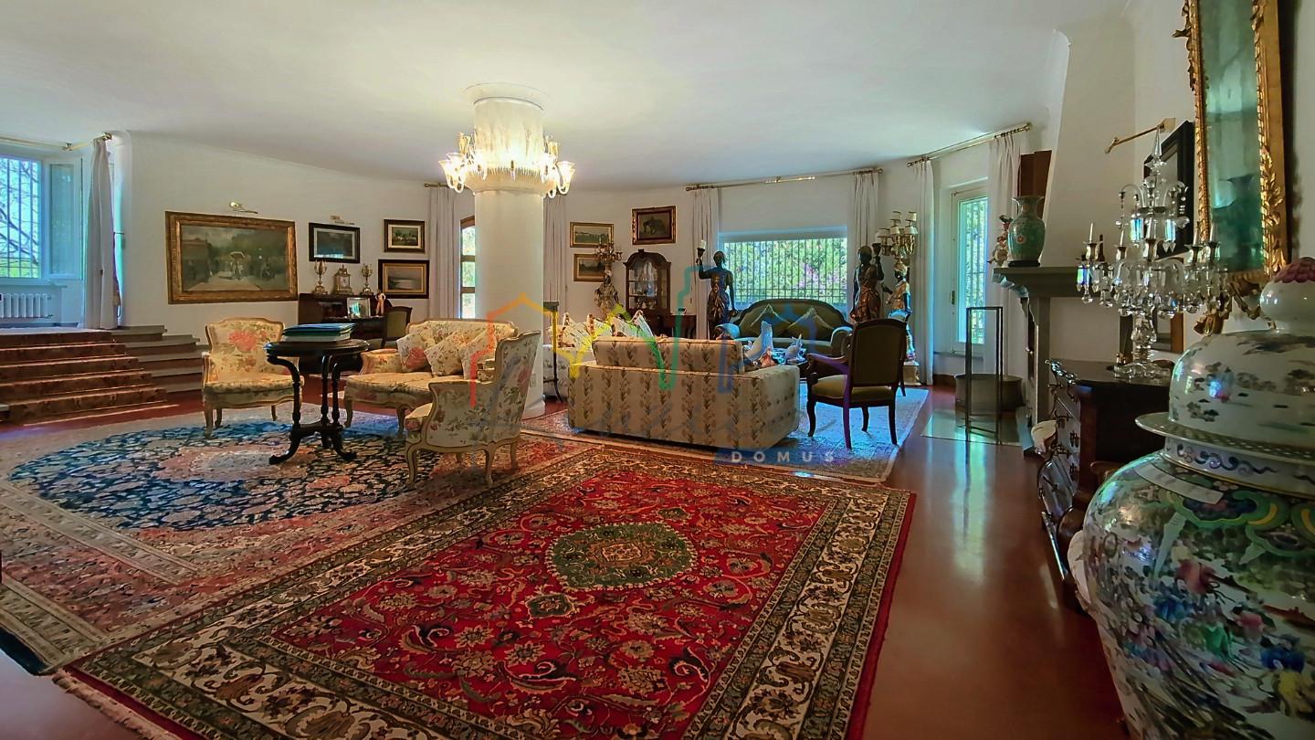 Elemento distintivo è il parco che circonda la villa, arricchito da alberature mature, roseti, percorsi nel verde e piccoli laghetti decorativi, conferendo allambiente unatmosfera naturale di grande fascino La piscina, perfettamente inserita nel contesto, rappresenta uno spazio ideale per il relax e la convivialità. La proprietà include inoltre annessi, locali accessori, tettoie e ampie aree di parcheggio coperte, oltre a unautorimessa, garantendo comodità e funzionalità. La villa, catastalmente suddivisa in tre unità abitative, dispone complessivamente di 8 camere e numerosi ambienti di servizio, offrendo grande versatilità duso: - residenza principale di prestigio - soluzione per più nuclei familiari - abitazione con spazi indipendenti per ospiti o personale Internamente è cosi composta: - Piano principale: ampia sala di circa 70 mq con camino e accesso alla terrazza, cucina abitabile, zona pranzo e veranda chiusa utilizzabile tutto lanno.