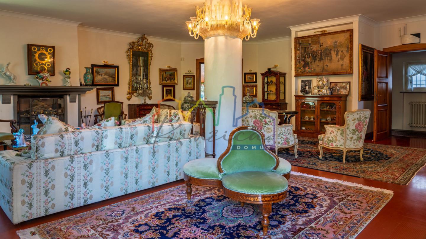The villa, cadastrally divided into three residential units, has a total of 8 bedrooms and numerous service rooms, offering great versatility of use: prestigious main residence solution for multiple families dwelling with independent spaces for guests or staff Internally it is composed as follows: Main floor: large living room of approximately 70 sqm with fireplace and access to the terrace, kitchen, dining area and closed veranda usable all year round.