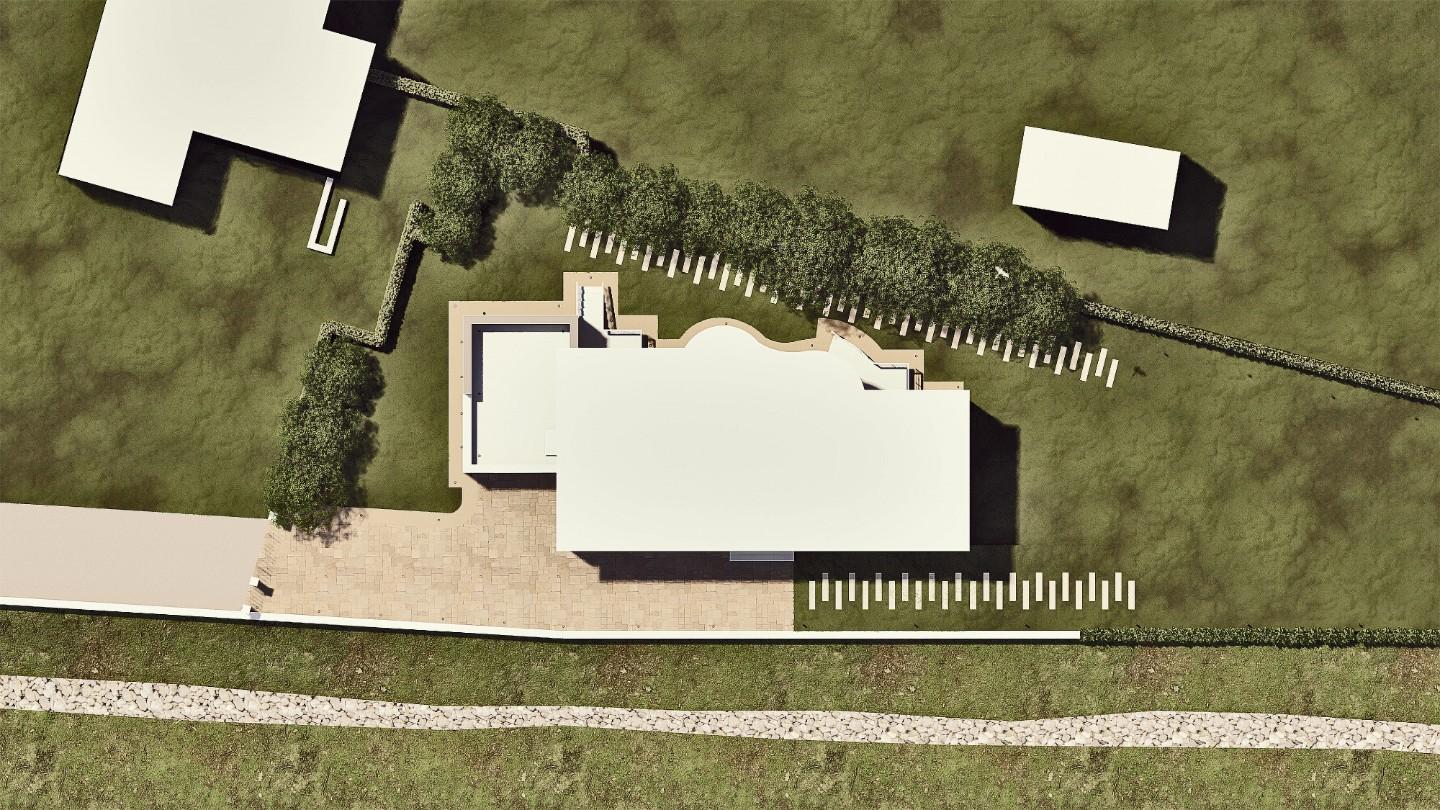 La villa di nuova costruzione, è così composta piano terra: ampia zona giorno , cucina abitabile, bagno con finestra, ripostiglio e una zona living che affaccia su patio con vista panoramica.
