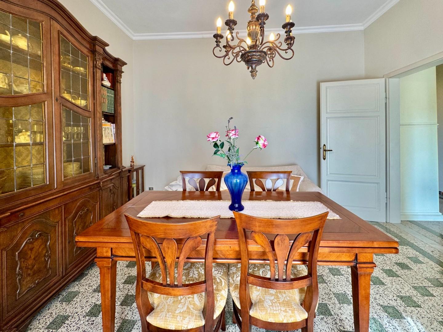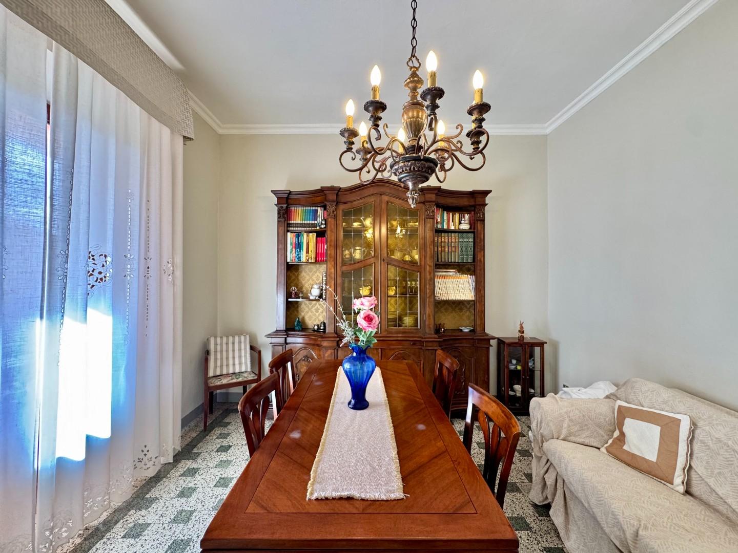 Dotazioni e finiture: impianto di riscaldamento autonomo a metano con caldaia a condensazione, infissi in legno, persiane in alluminio, pavimenti in graniglia, aria condizionata installata nel disimpegno del piano primo, allarme, caminetto, predisposizione stufa a pellet, al piano terra infissi nuovi in alluminio con vetrocamera.