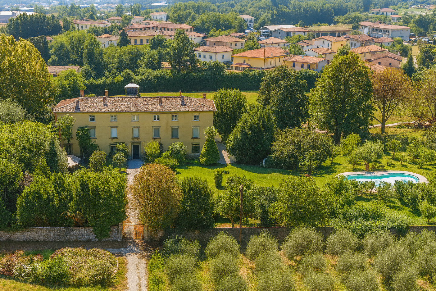 Allinterno della proprietà si trovano anche diverse strutture di pregio: una grande casa del contadino di circa 190 mq, sviluppata su due livelli e ideale come residenza per ospiti o personale; un fienile di circa 270 mq; e una limonaia di 150 mq, perfetta da trasformare in sala eventi, area wellness o spazio dedicato al relax.