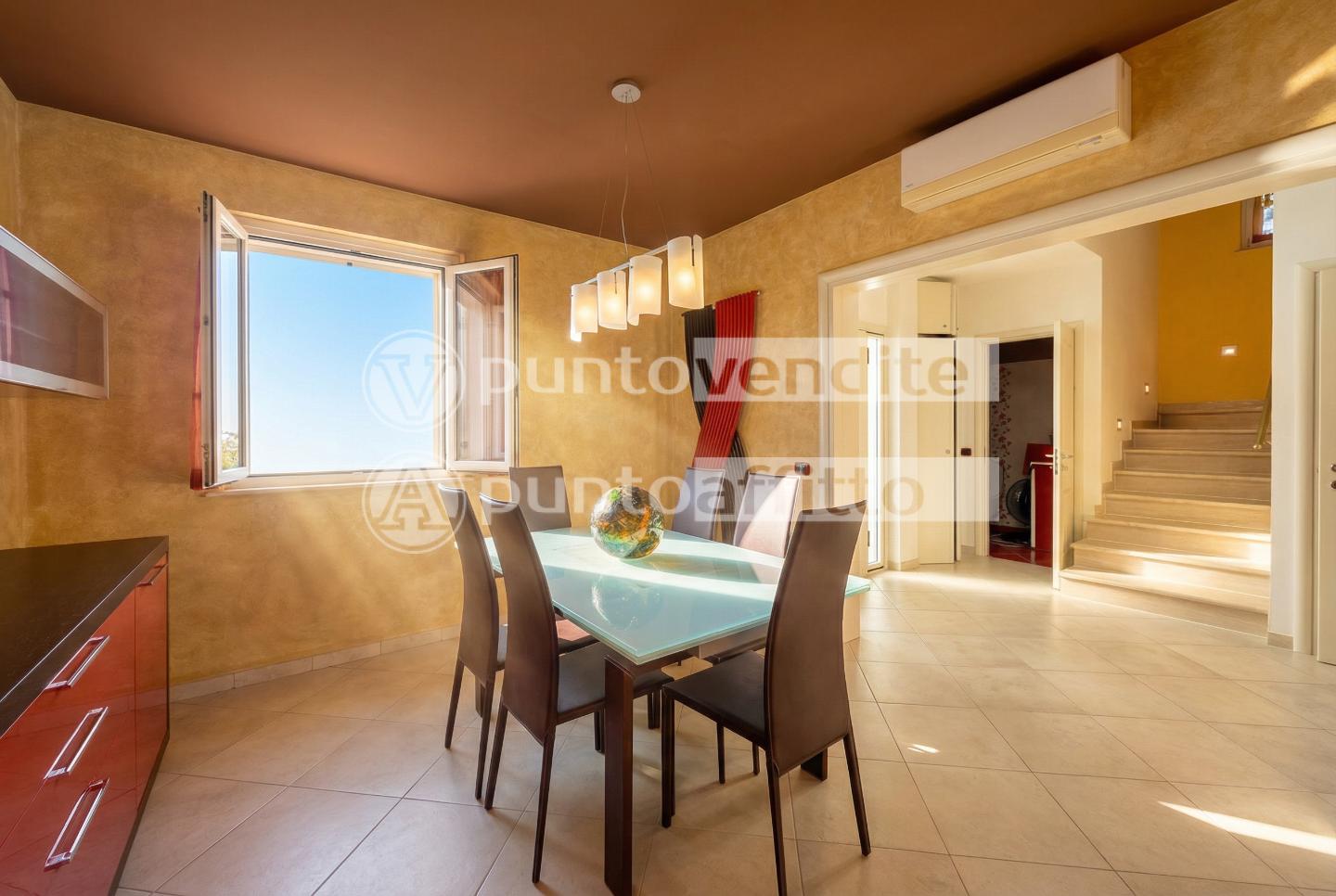 Una scala in travertino porta al piano primo, dedicato alla zona notte, dove si trovano la camera matrimoniale, altre due camere di cui una attualmente utilizzata come stanza armadi con finestra oltre a ripostiglio e bagno.