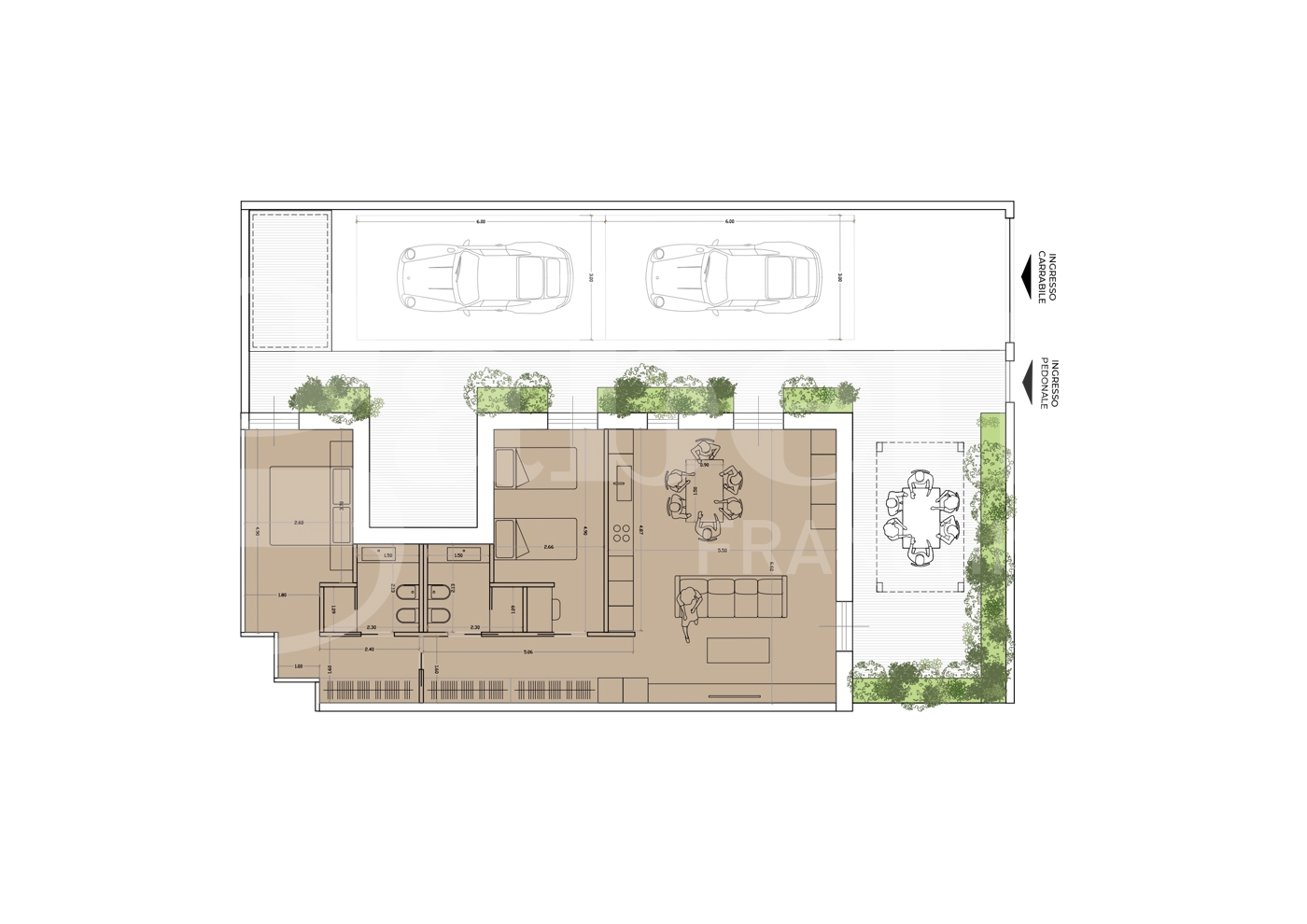 Mentre per lo spazio esterno si possono ricavare uno o pi posti auto, pi una zona conversazione, ideale per i momenti di relax.