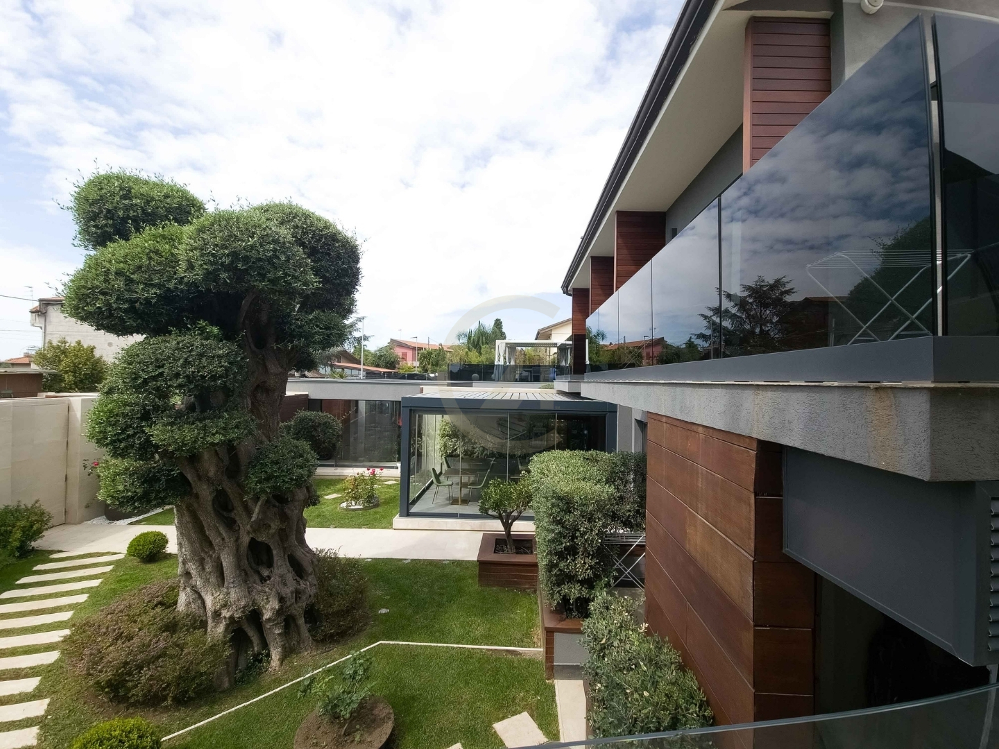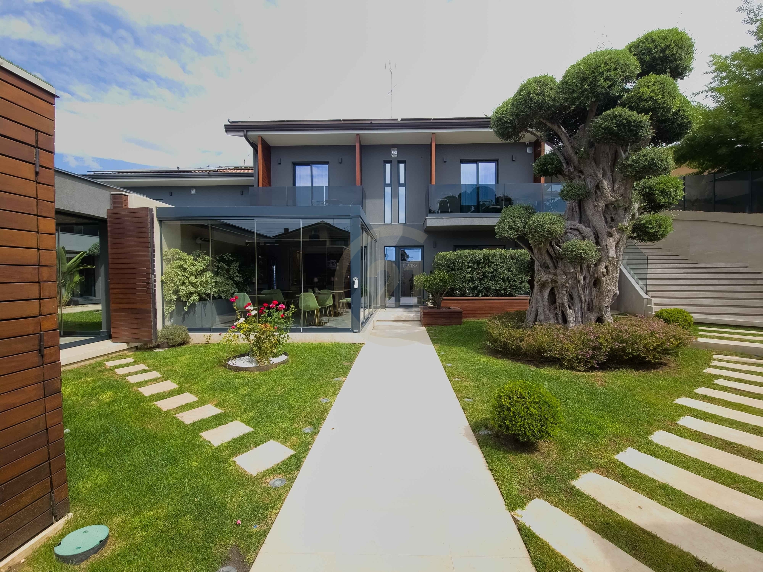 L'unità destinata a civile abitazione presenta le medesime finiture di lusso e comprende un ampia zona living con cucina, bagno e accessori al piano terra inclusa una deliziosa piscina coperta; al piano primo sono presenti 3 camere, due bagni e uno studio con area esterna a livello con ampia piscina, solarium e angolo bar. Un'ampia veranda immersa nel verde offre il massimo della comodità con ampia zona living, forno e zona grill per feste e serate con amici e parenti.