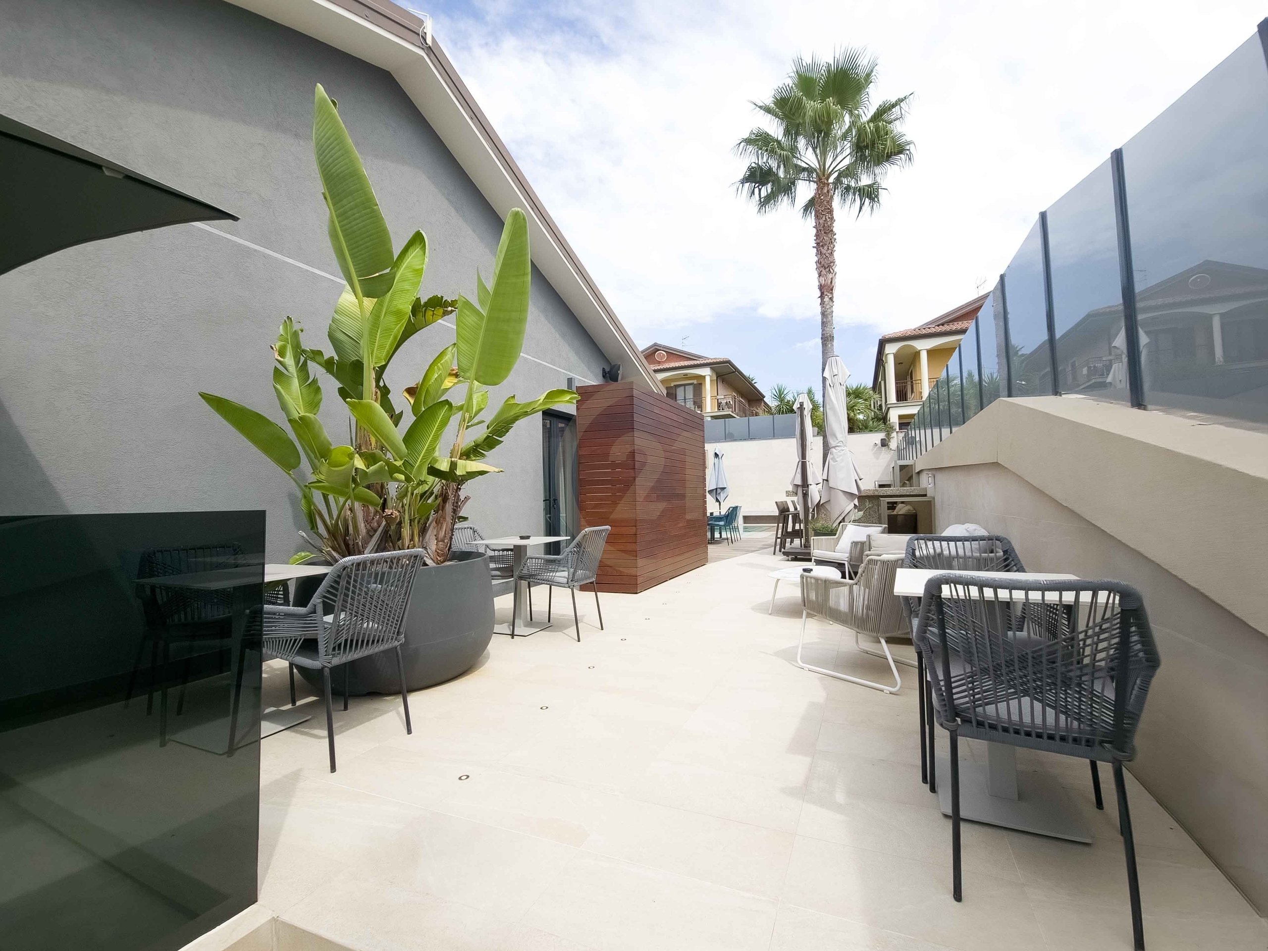 La struttura ricettiva rappresenta un unicum nella zona dei paesi etnei: 4 suite con bagno in camera, finiture di lusso, aree comuni interne ed esterne, piscina coperta, piscina all'aperto, bagno turco, zona relax, area massaggi.