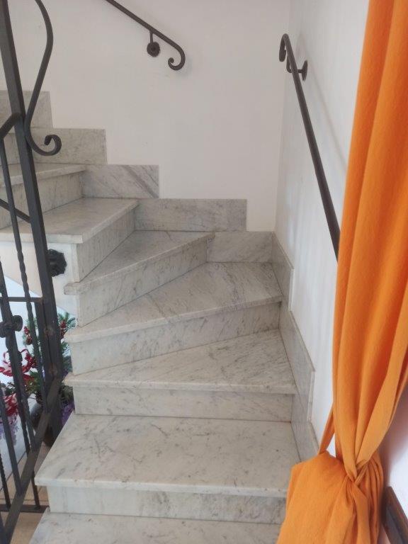 Marina di Massa: A circa un km dal mare villetta schiera di circa 120 mq disposta su 4 livelli con corte privata e posto auto; internamente si compone di soggiorno, cucina abitabile e bagno di servizio al piano rialzato; grande disimpegno ad uso salottino con terrazza, ampia camera matrimoniale con terrazza e bagno finestrato con doccia al piano primo; due camere e bagno al piano secondo mansardato (civile abitazione); ampia taverna con camino con accesso sia interno che esterno al piano seminterrato.