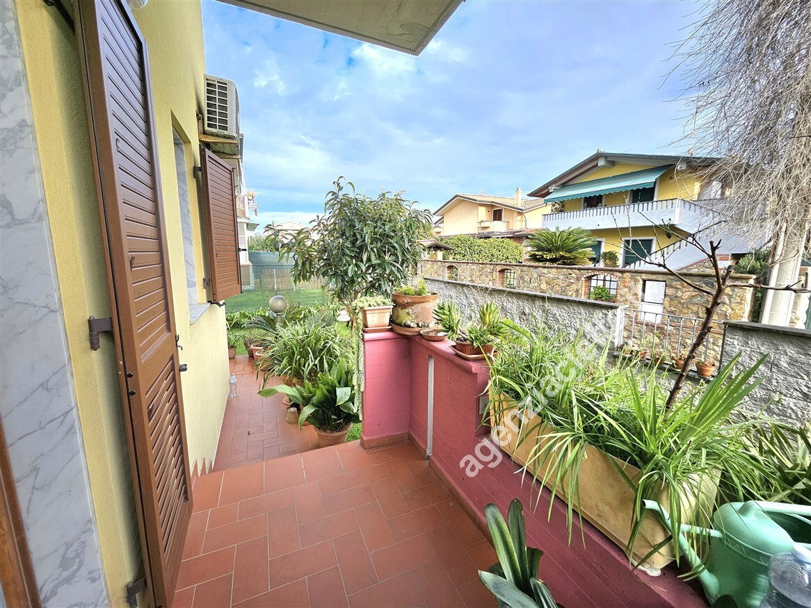Marina di Massa Elegante villetta di testa con giardino esclusivo di 200 mq In contesto tranquillo e riservato, a circa 1 km dal centro e dalle spiagge, proponiamo graziosa villetta di testa in fabbricato trifamiliare, libera su tre lati, per una superficie complessiva di circa 160 mq. La proprietà si distingue per l ingresso completamente indipendente che conduce al giardino esclusivo di circa 200 mq, sviluppato su tre lati dell abitazione: uno spazio ideale per vivere momenti di relax all aperto, pranzi e cene in compagnia o semplicemente godersi la quiete della zona. L abitazione si sviluppa su due livelli oltre al piano seminterrato ed è così composta: Piano terra: ingresso, ampio e luminoso soggiorno-salotto, cucina abitabile, bagno e tre balconi con accesso diretto al giardino; Piano primo: tre spaziose camere da letto, ciascuna con balcone, e bagno; Piano seminterrato: grande taverna con camino, perfetta come zona conviviale, oltre a vano lavanderia/ripostiglio.