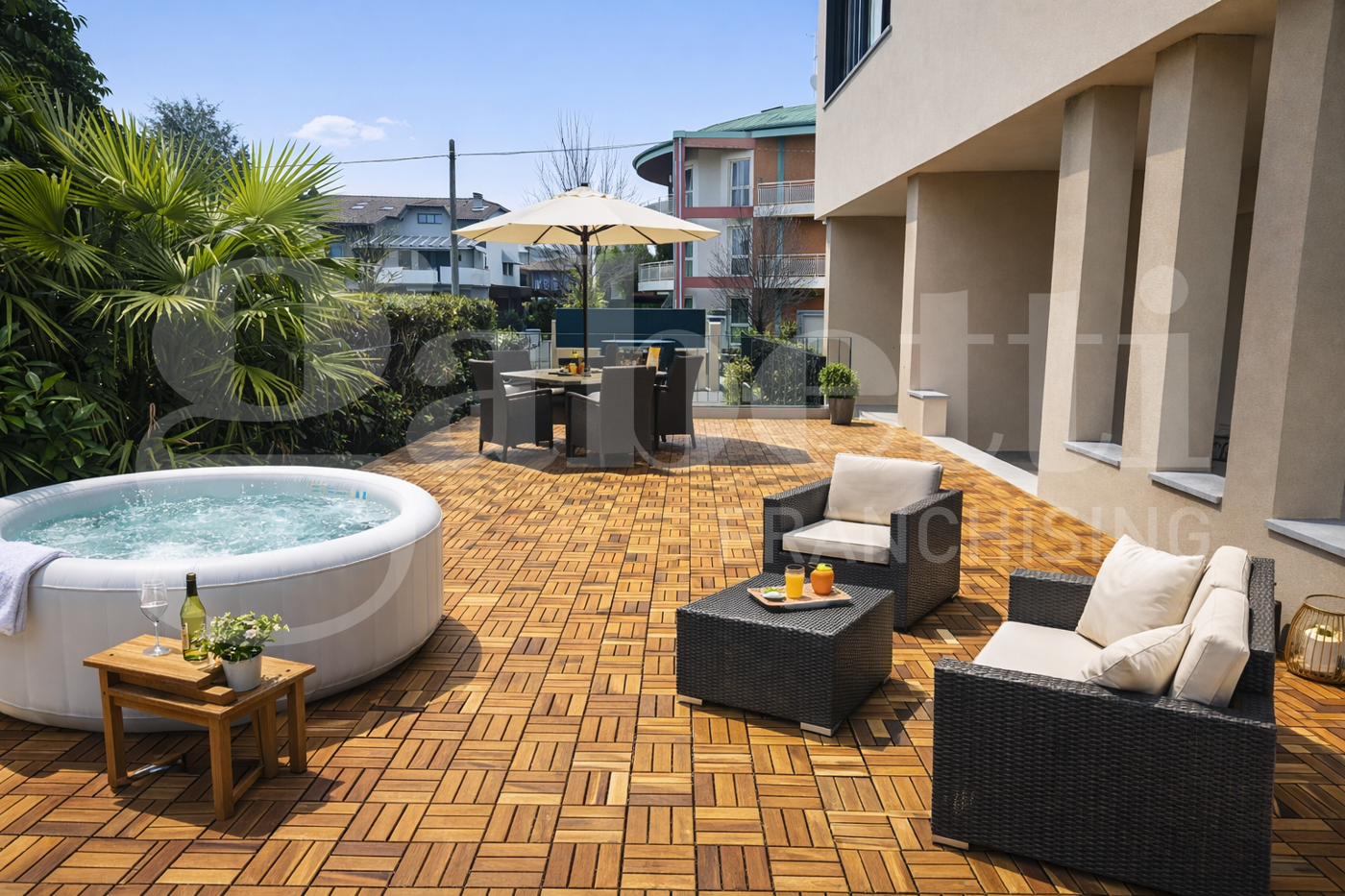 Completa la propriet un lastrico solare di circa 50 mq, predisposto per linstallazione di una jacuzzi, perfetto come solarium panoramico e area wellness privata.