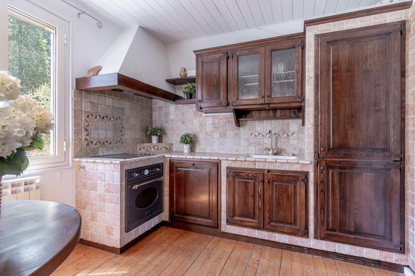 Da cancello privato si accede alla villa e tramite scala si arriva al piano primo dove si apre il bel soggiorno doppio con camino, cucina abitabile, terrazza, due camere matrimoniali di cui un con terrazza, doppi servizi al piano superiore, bellissimo giardino e terreno circostante destinato a vigneto.