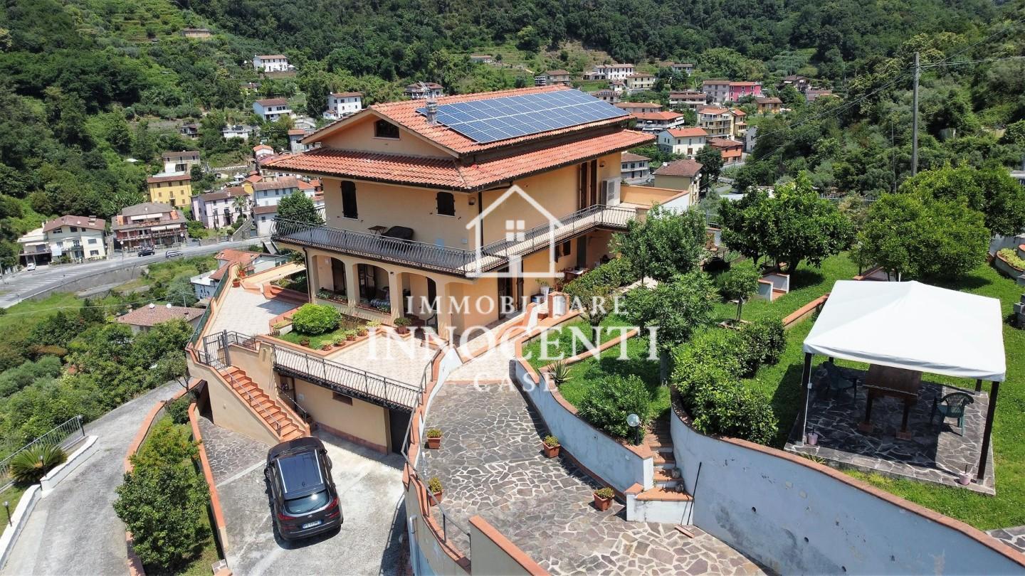 La casa è posto sulla strada che sale al Castello Aghinolfi, poco distante dal centro storico di Montignoso dove si possono trovare negozi e servizi A completare La proprietà un terreno di circa 1800 mq, disposto in ampi terrazzamenti piantumati ottimamente con alberi da frutto ed erbe mediterranee, da dove si può godere la bella vista della costa della Versilia, cenare comodamente in completa privacy, usufruire dell'ampio parcheggio interno, o predisporre una piscina.