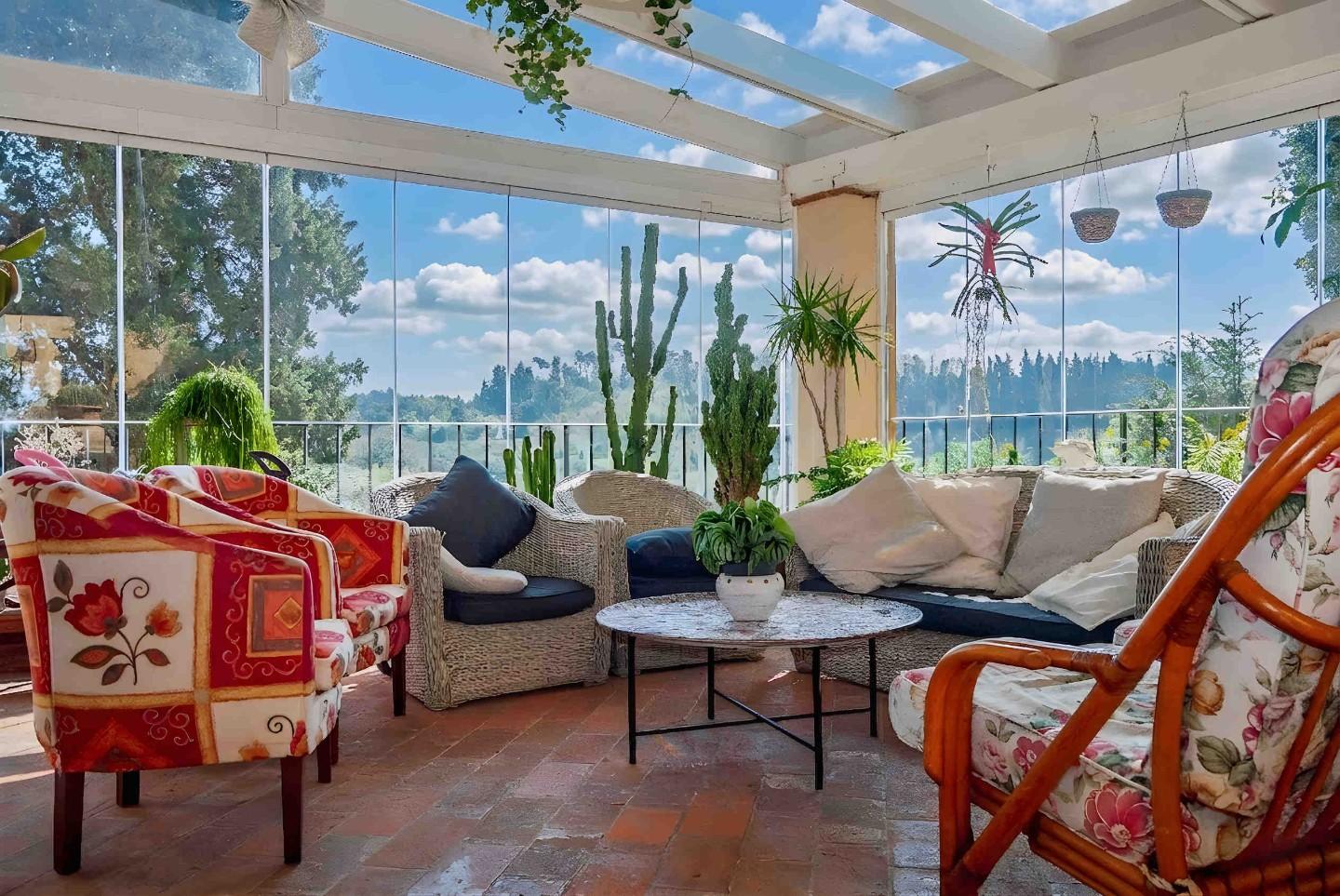 Dalla zona giorno si accede a una terrazza vetrata che si affaccia sul giardino privato.