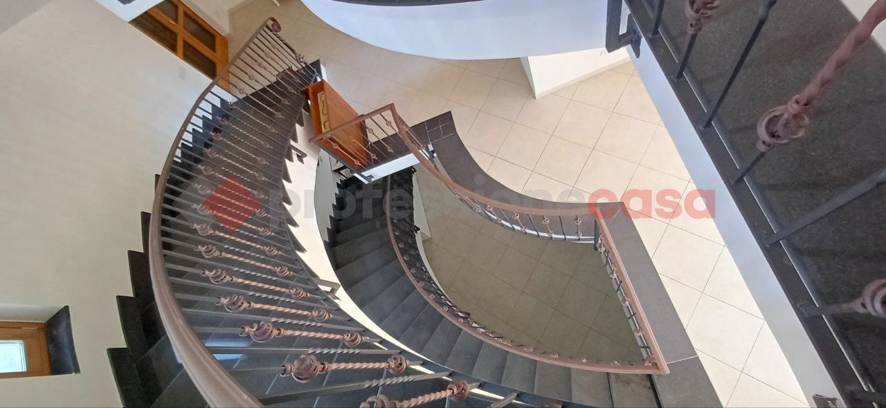 La soluzione si sviluppa su 4 livelli, deposito di circa 200 mq con garage con serranda elettrica e ricarica per auto elettriche, piano rialzato ( zona giorno con cucina, soggiorno con camino, ulteriore salone e bagno) e primo ( saloncino, 3 camere e 2 bagni di cui uno in camera)residenziali con circa 100 mq di terrazzi, e piano secondo in parte abitativo ed in parte sottotetto, collegati con scala elicoidale interna.