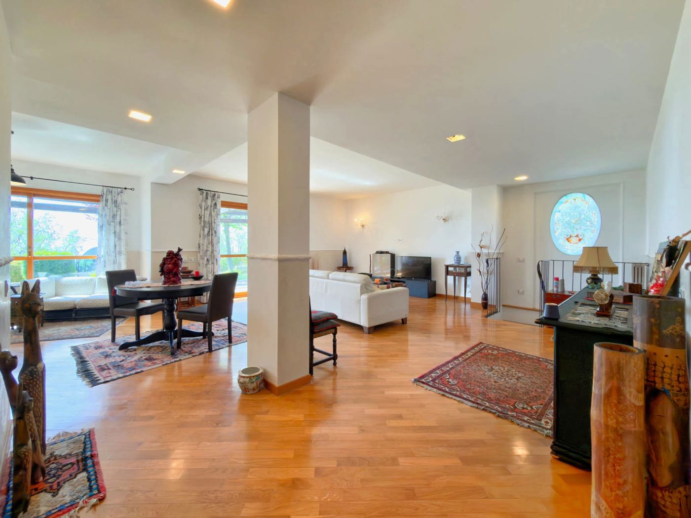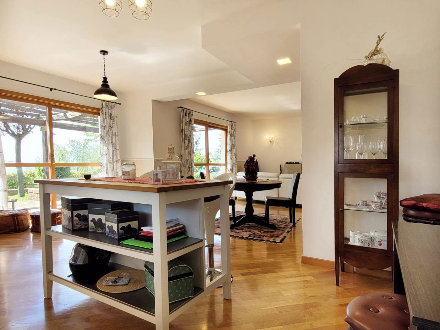 Al piano terra di circa 172 mq, troviamo un ingresso su ampio salone e angola cottura, molto luminoso per la presenza di ampie finestre e portefinestre che aprono su un portico antistante la casa che fa parte di un pi ampio giardino.