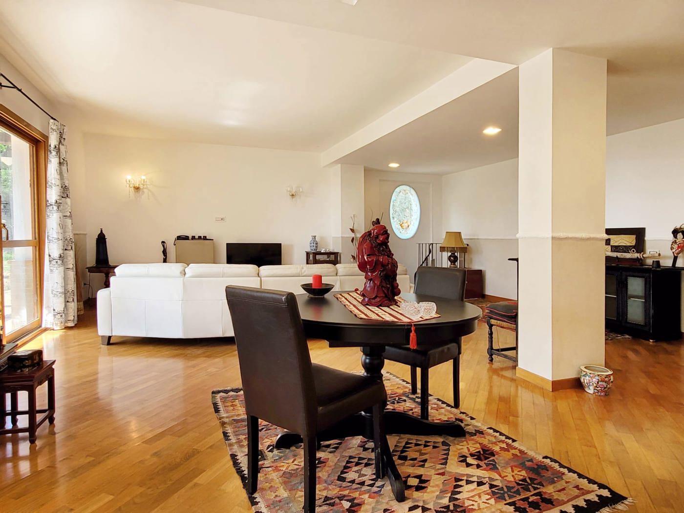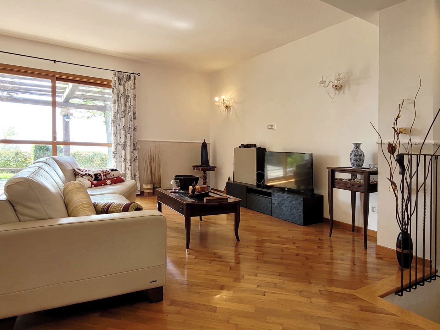 Posta in posizione panoramica che spazia dalle colline circostanti al mare, la villa rappresenta una soluzione ideale per due nuclei familiari.