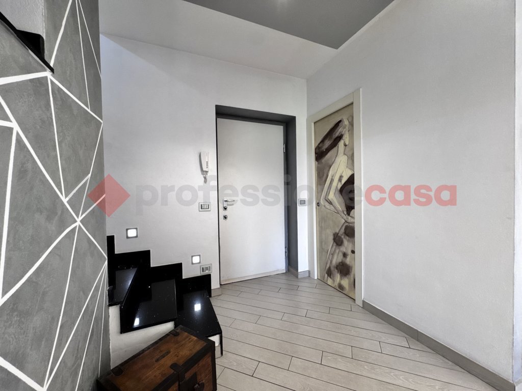 Una scenografica scala in OKITE conduce al piano superiore, dove la zona notte stata organizzata in modo funzionale e armonioso: troviamo un locale sottotetto attualmente utilizzato come camera da letto; un elegante bagno finestrato, molto luminoso, completo di box doccia e vasca; una seconda camera da letto e a completare il piano unulteriore camera, attualmente quella matrimoniale, con cabina armadio a parete e accesso diretto al terrazzo.
