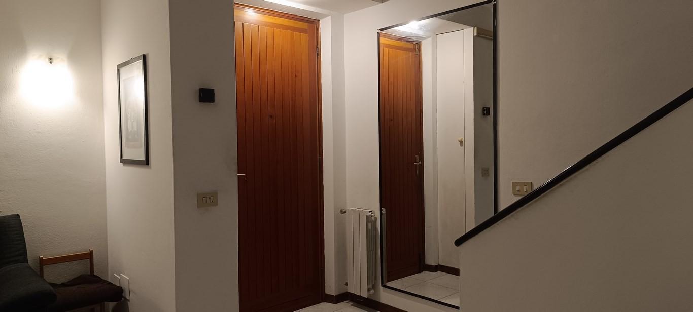 La casa espone su due lati liberi, sotto e sopra nessuno, ad est sul fronte e ad ovest sul retro sul giardino e la terrazza.