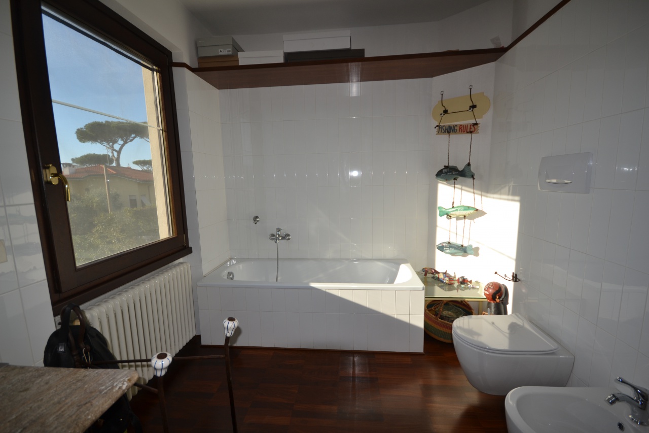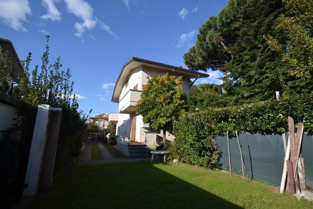 marina di pietrasanta - localita' focette- zona residenziale- 800 metri dal mare - villa singola di circa mq 260 distribuiti su quattro piani- divisa in tre appartamenti ma catastalmente indivisibili- giardino su 4 lati di circa 400mq esclusa la casa- tenuta molto bene- composta da: piano terra.
