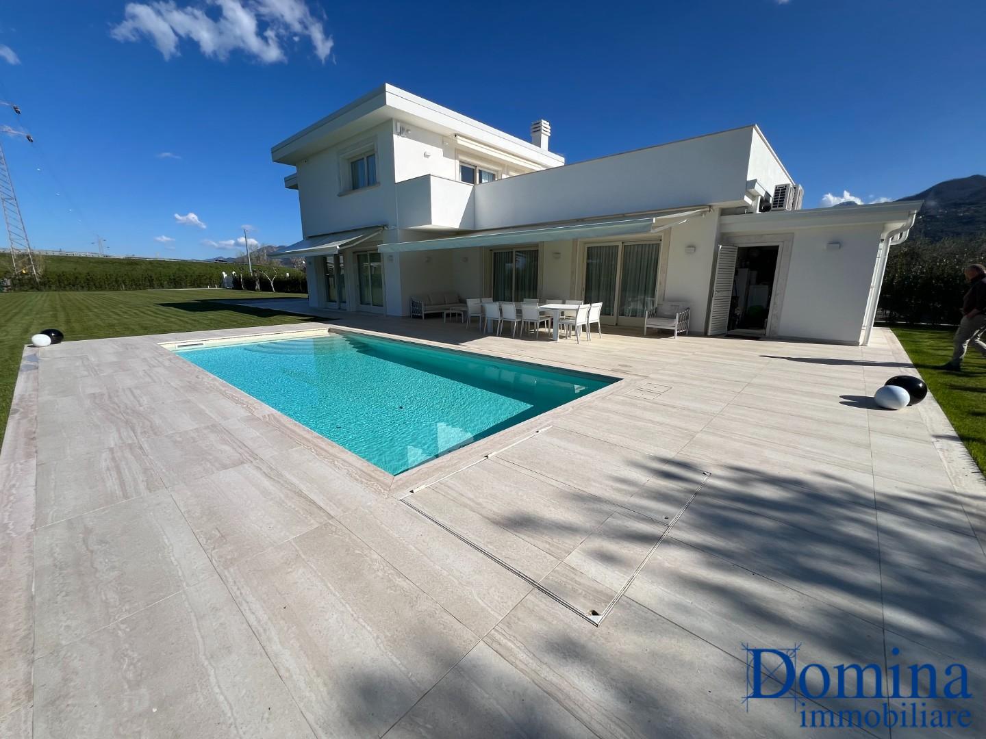 Immobile in classe energetica A2. Internamente, al piano terra, ingresso su soggiorno, cucina abitabile, camera matrimoniale con bagno, camera matrimoniale, bagno di servizio e lavanderia esterna; piano primo con due camere matrimoniali, entrambe con bagno ed una con cabina armadi, terrazzo e lastrico solare di 40mq. Completano l'Immobile 5000 mq. di giardino con piscina. Contatta l'inserzionista