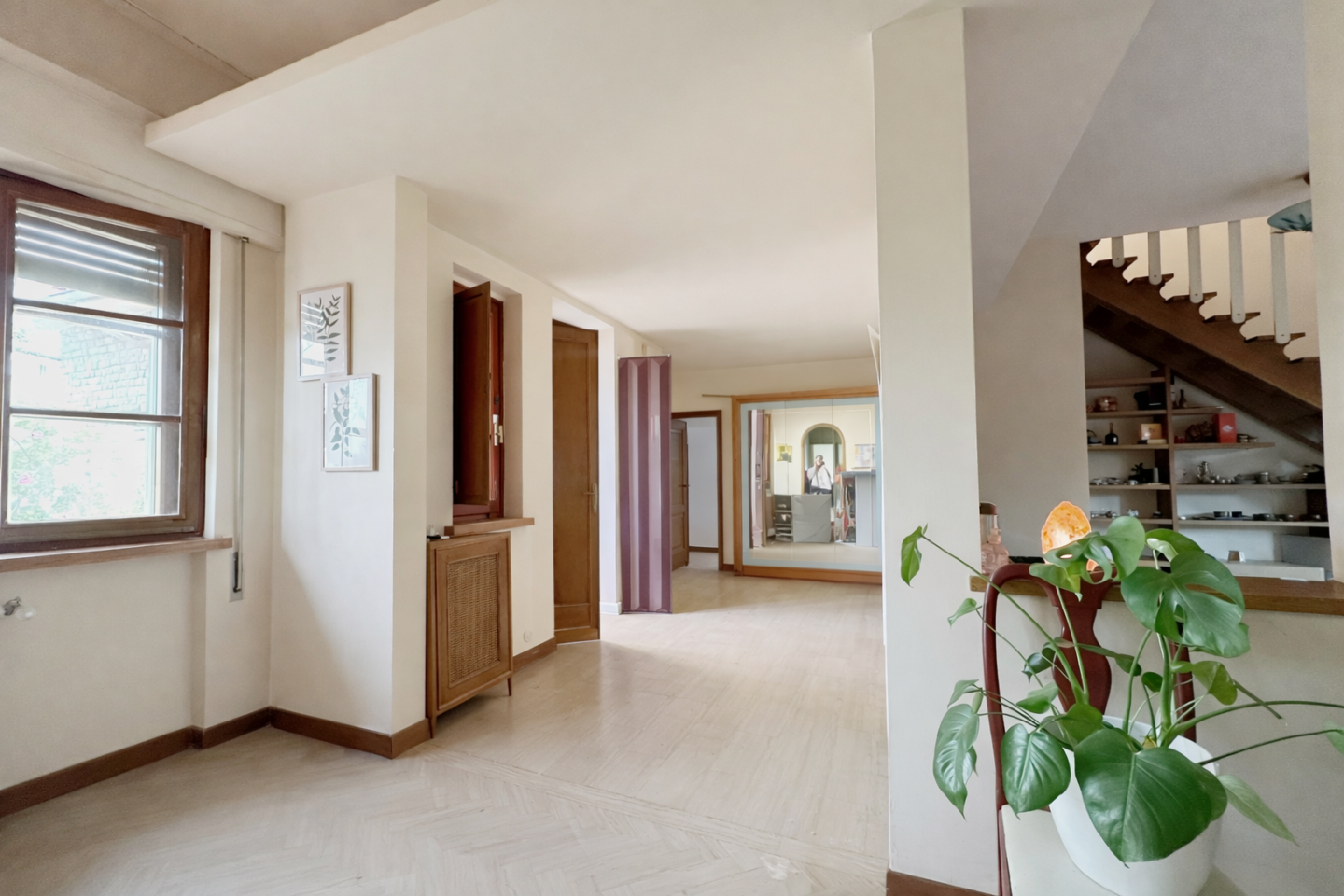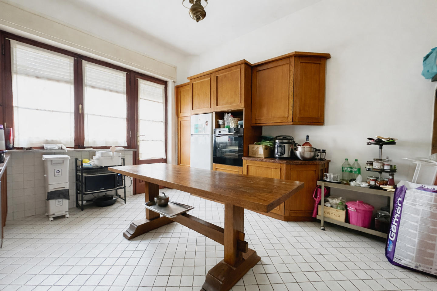 Lingresso conduce in un luminoso soggiorno di generose dimensioni, affiancato dalla cucina abitabile con zona pranzo.