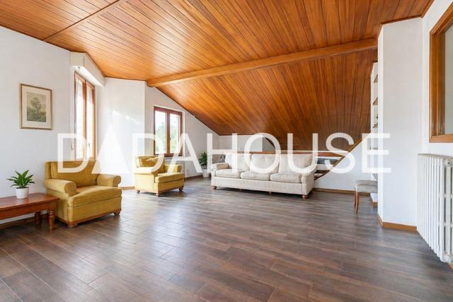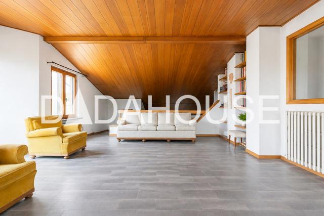 La mansarda, leggermente sopraelevata, si presenta come un ampio open space di oltre 40 mq con affaccio sul soggiorno sottostante: uno spazio versatile, ideale come area relax, zona hobby o sala giochi.