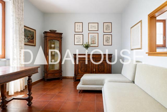 Completa la proprietà un ampio giardino con terreno retrostante di circa 5.000 mq complessivi, perfetto per la realizzazione di una piscina, un campo da tennis o una suggestiva area verde privata.
