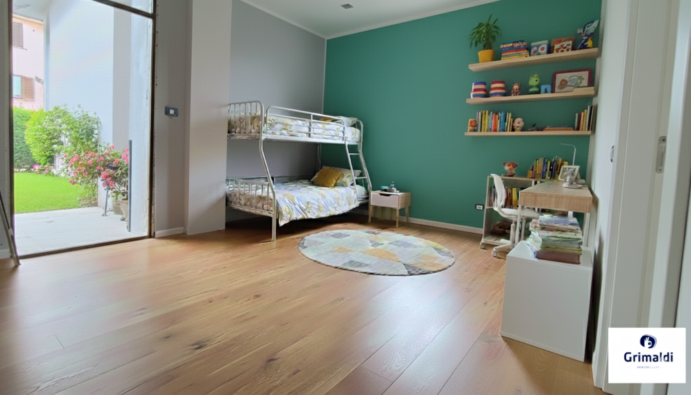 Limmobile stato progettato per affacciarsi su un ampio giardino privato, ideale per vivere al meglio gli spazi esterni.