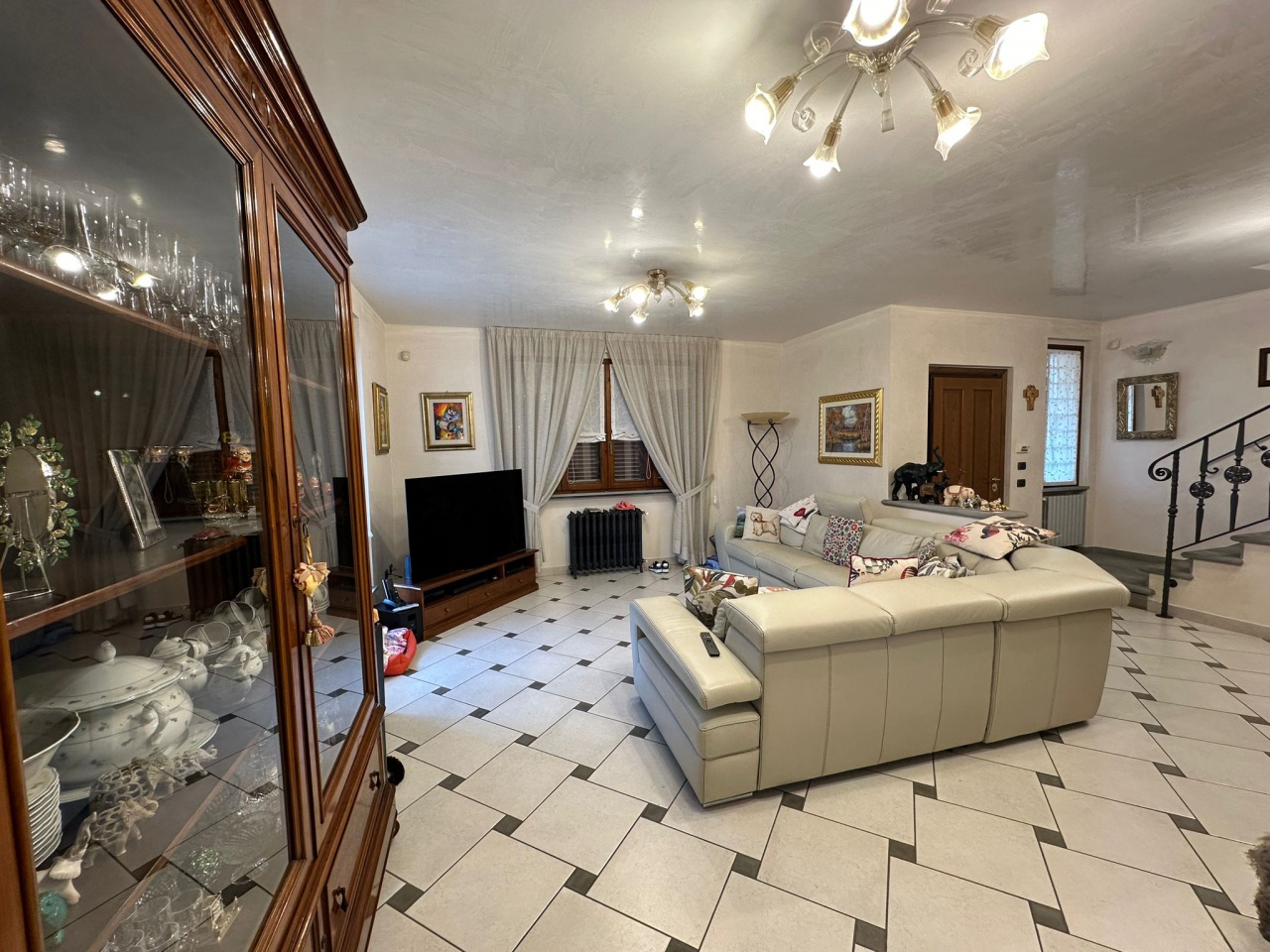 Al piano seminterrato, sempre con accesso tramite comoda scala interna in pietra, ci accoglie una confortevole taverna con camino e forno a legna, bagno, garage e locali tecnici vari. Ottime finiture di prestigio, impianto foto voltaico, aria condizionata, impianto di allarme, ottime condizioni di manutenzione.