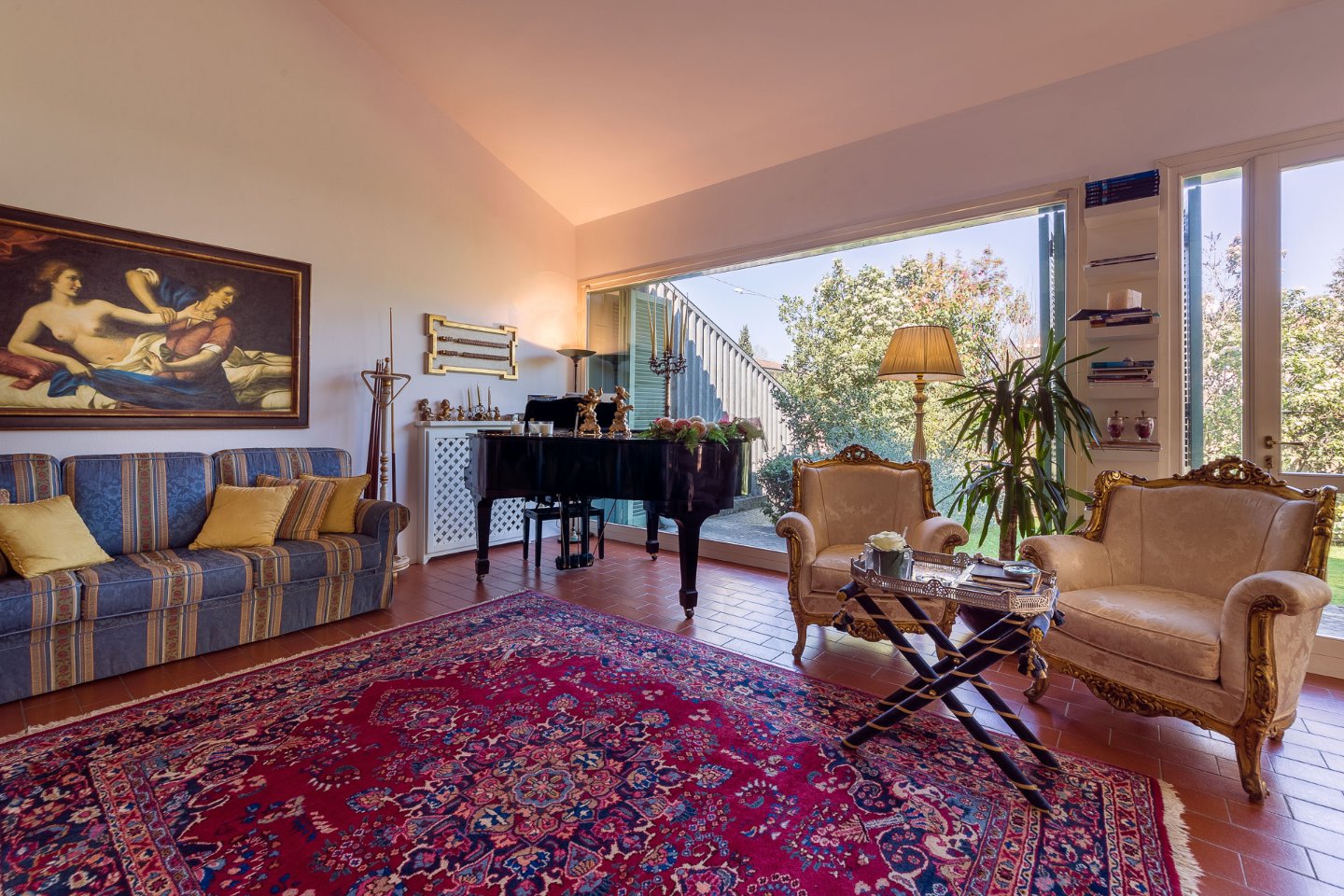 Strizzando un occhio ad uno stile classico-contemporaneo, è caratterizzata prevalentemente da pareti-vetrate per accogliere la migliore luminosità e consentire la stretta comunicazione tra la zona living ed il riservato giardino privato.