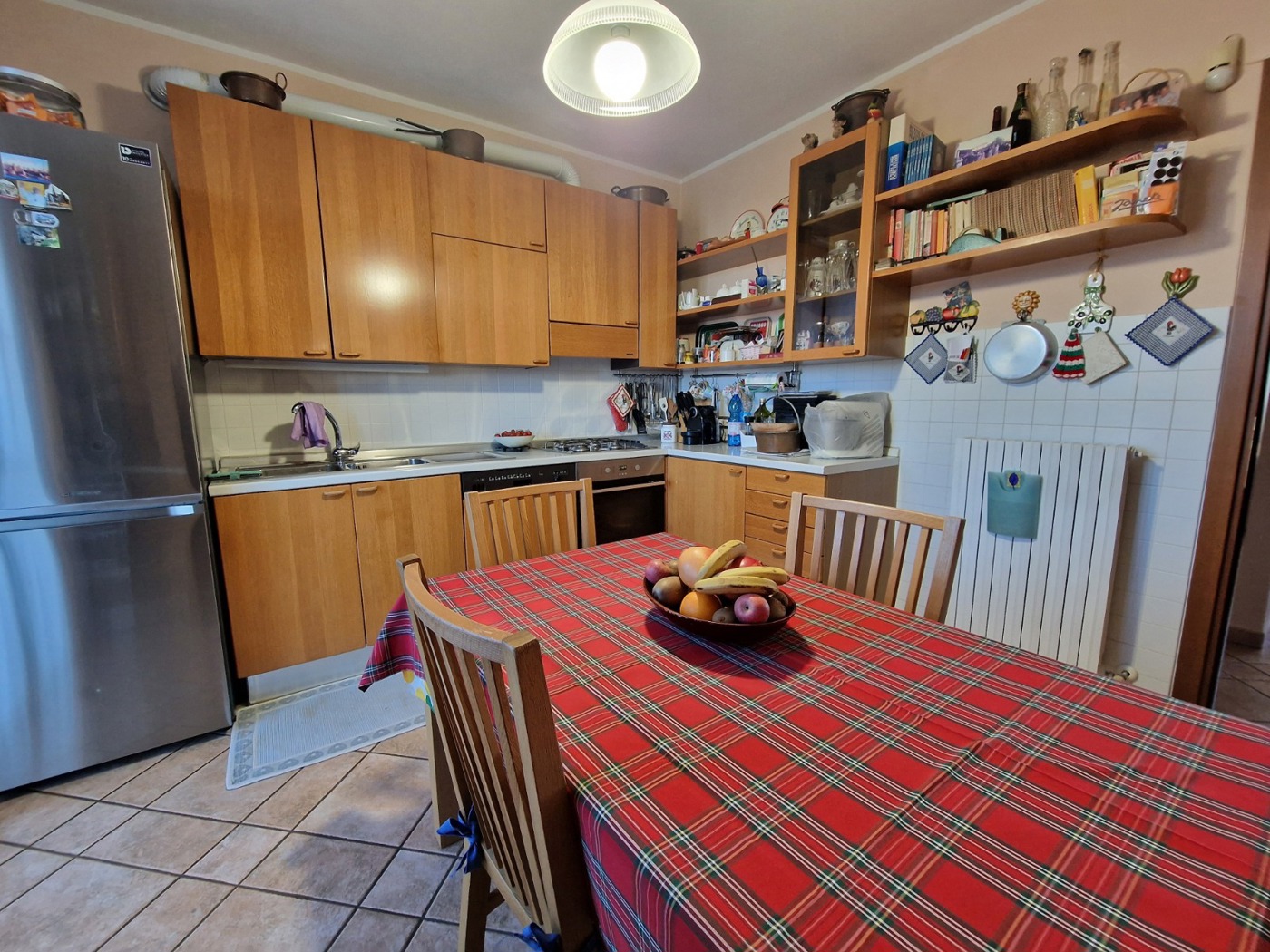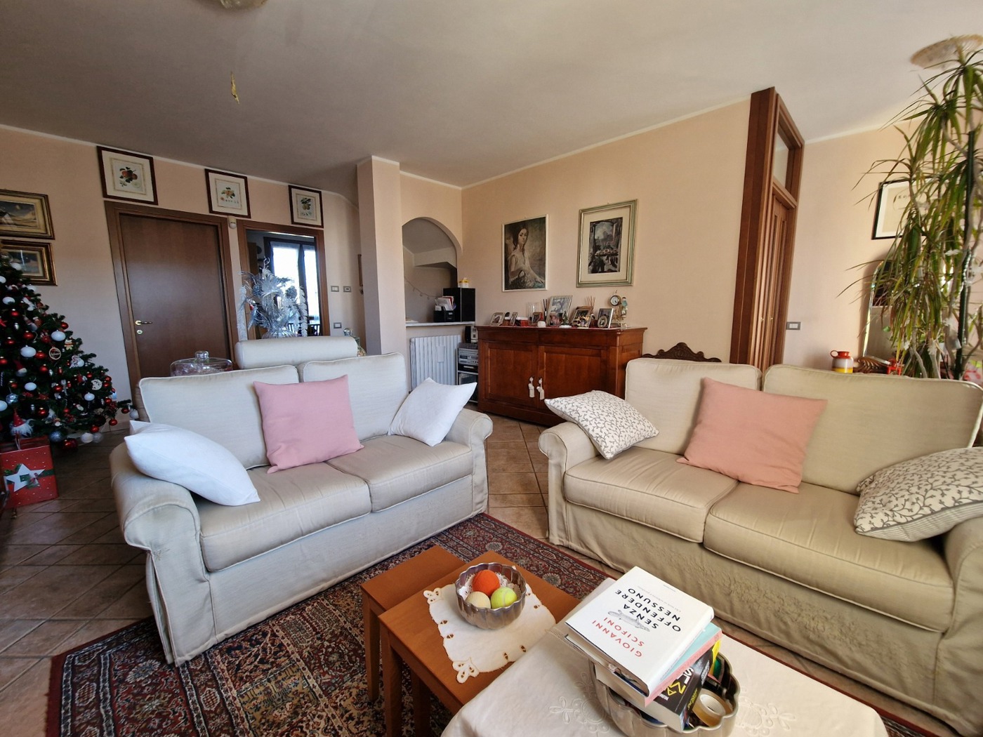 All'ingresso, un ampio soggiorno accoglie gli ospiti con calore e luminosit, mentre la cucina abitabile, con accesso diretto al giardino sul retro, perfetta per momenti di convivialit e relax all'aperto.
