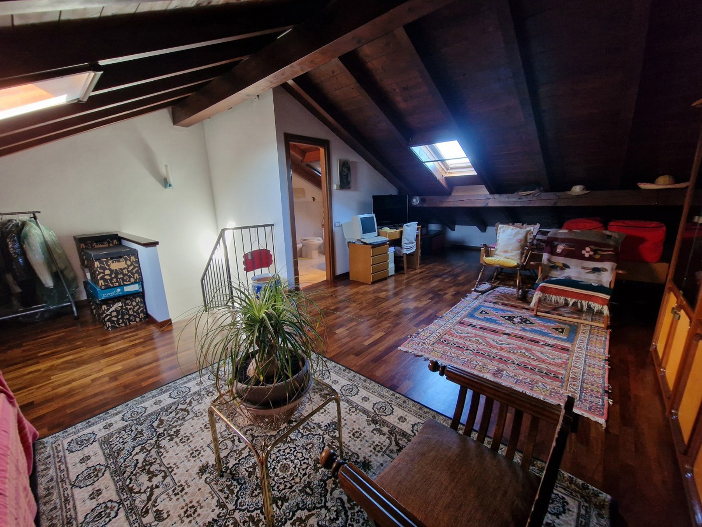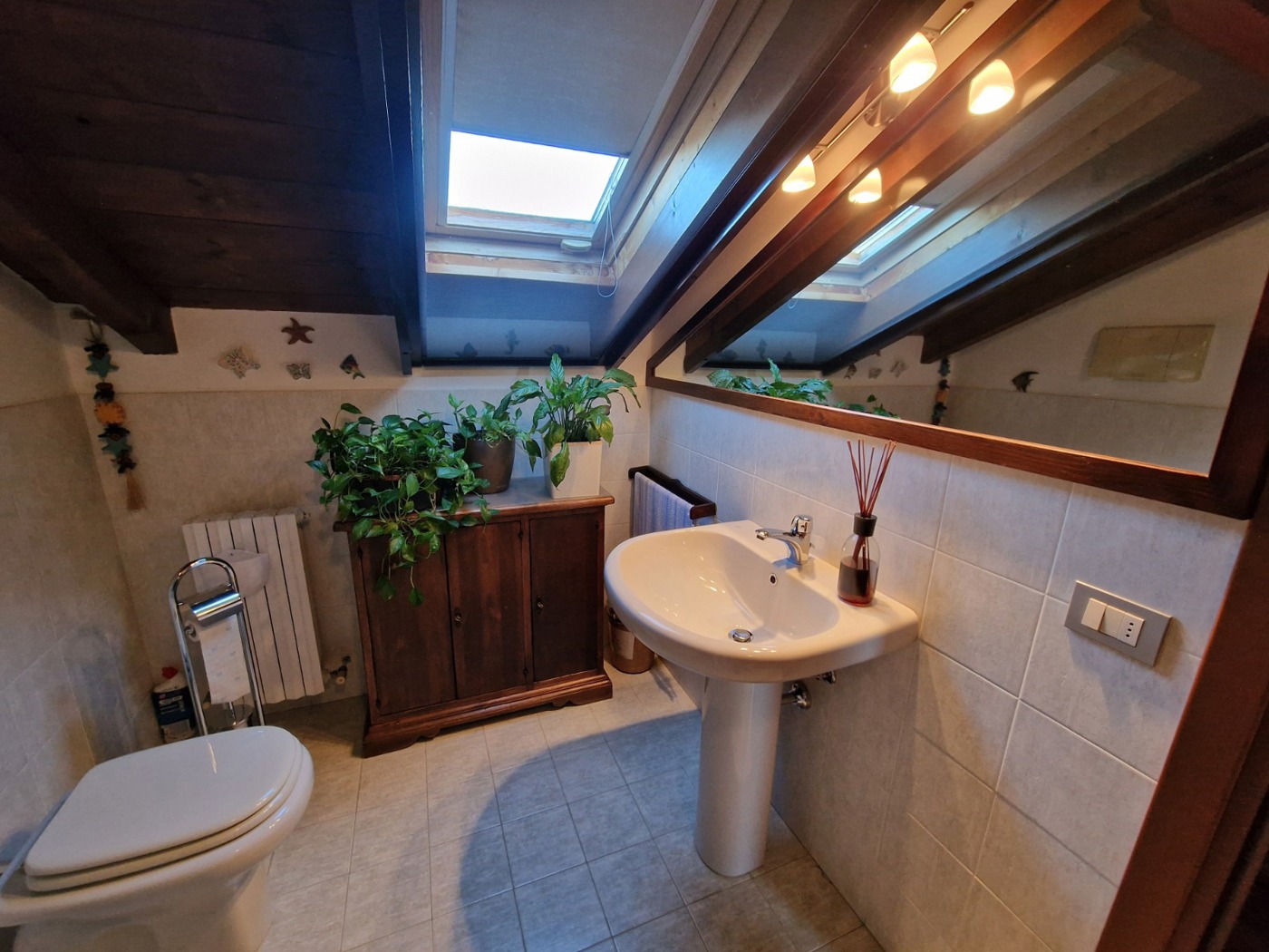 L'ultimo piano presenta un'ampia zona mansardata, perfetta come locale hobby o studio, e un terzo bagno con box doccia per maggiore comodit.