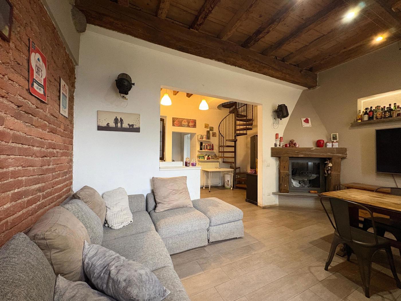 Al piano terra ci accoglie con un ingresso indipendente che conduce a un caldo e luminoso soggiorno impreziosito dal camino, perfetto per creare unatmosfera intima nelle stagioni pi fredde.