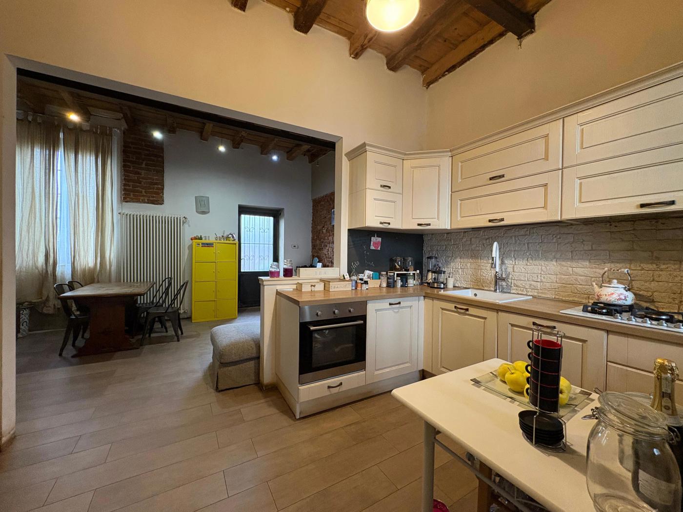 La cucina americana a vista rende lambiente moderno e conviviale, mentre il bagno finestrato, utilizzato anche come lavanderia, completa il piano con funzionalit e praticit.