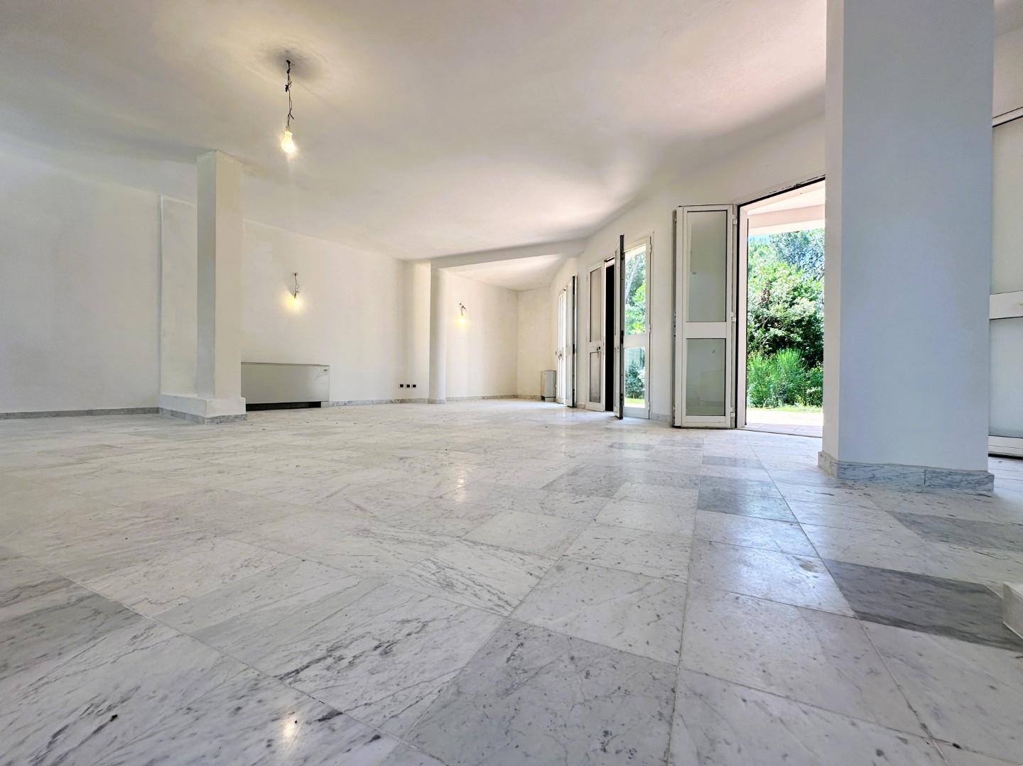 Piano Terra: L'ingresso apre su un living scenografico e luminosissimo, dove i pavimenti in pregiato marmo riflettono la luce che entra dalle numerose vetrate a tutta altezza.