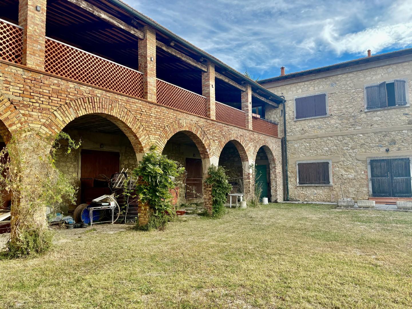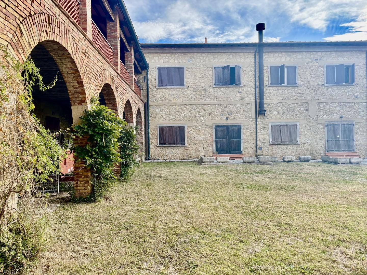 La villa, con una caratteristica conformazione a ferro di cavallo che abbraccia un'accogliente aia centrale, è già suddivisa in cinque appartamenti indipendenti, un ufficio e vari magazzini e cantine, oltre a unautorimessa per macchine agricole al piano terra.