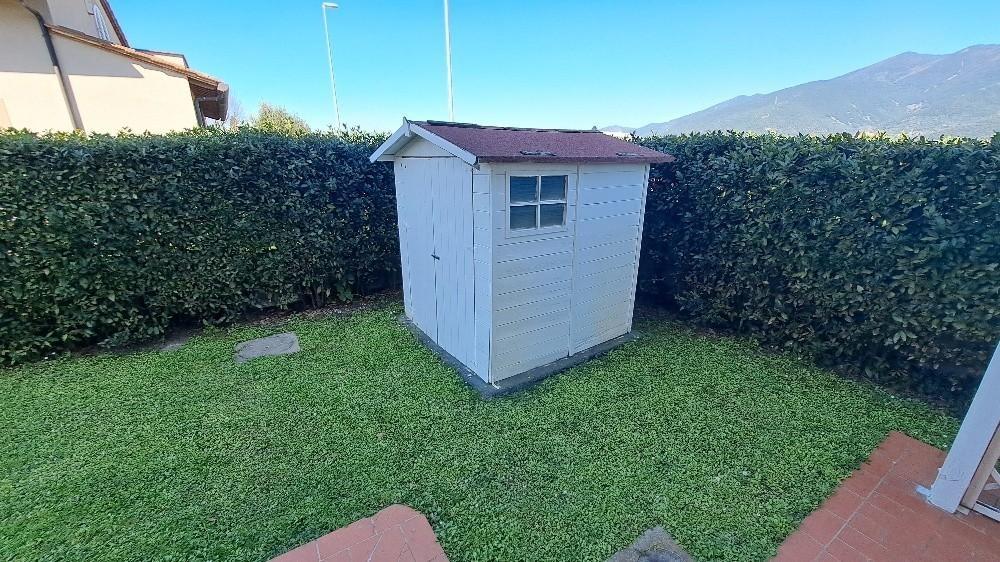 Nel giardino è inoltre presente un pozzo collegato ad una pompa elettrica e all'irrigazione automatica dello stesso, illuminazione, casetta in legno per attrezzi da giardino, pergola dove poter parcheggiare un auto al coperto e stenditoio.