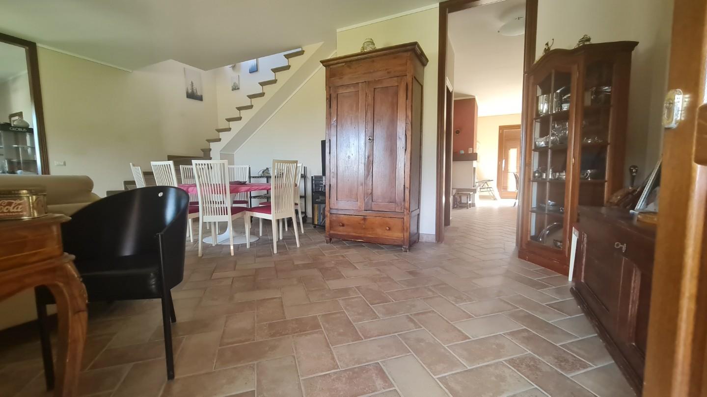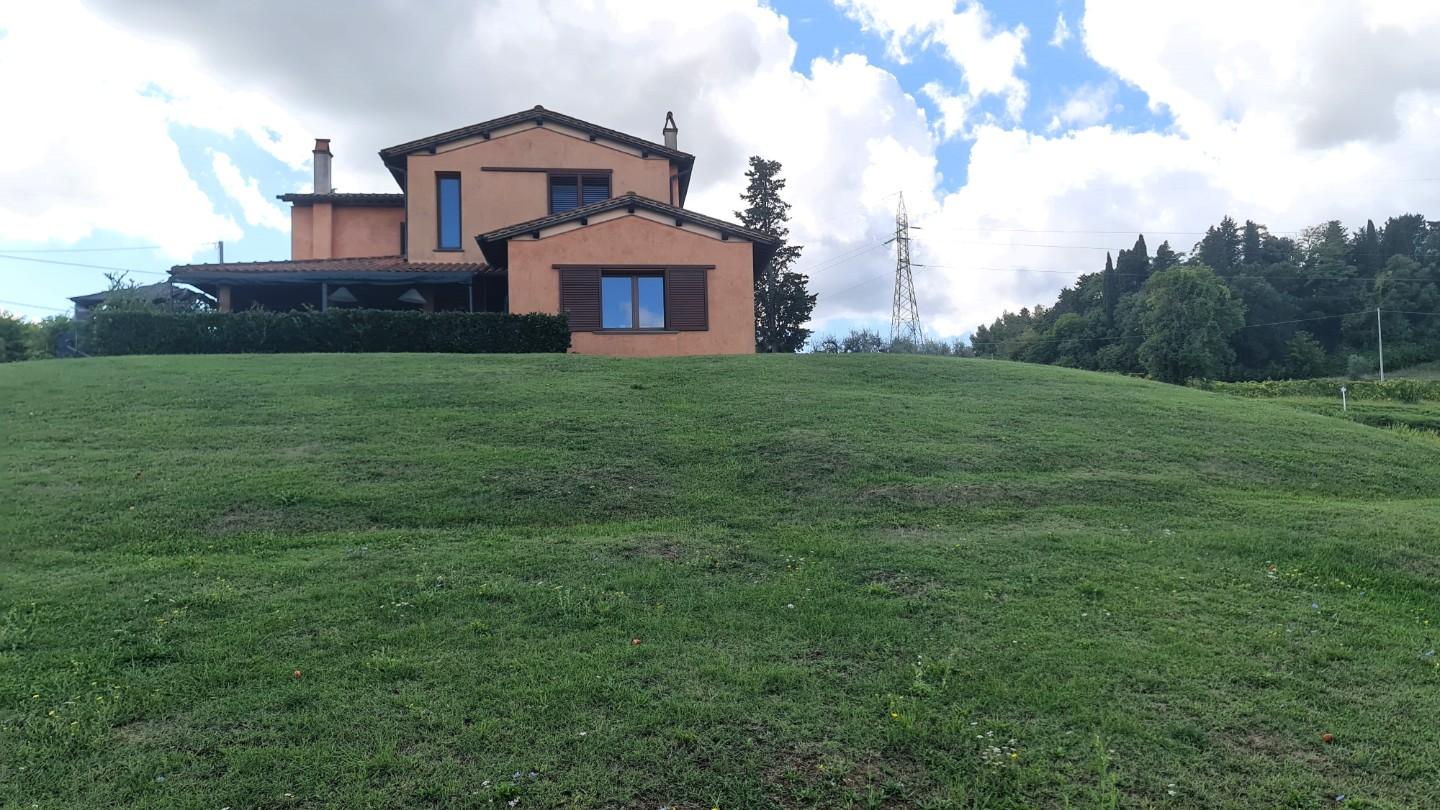 La proprietà offre una superficie di 240 mq + 180 mq seminterrati e si compone di: - Piano terra: ingresso che immette in un ampio soggiorno luminoso, studio con accesso al loggiato, sala pranzo con caminetto, secondo soggiorno separato, cucina abitabile con accesso all'esterno, bagno e ripostiglio - 1° piano: 3 ampie camere e 2 bagni, di cui uno con vasca - Piano seminterrato: taverna abitabile e locali adibiti a lavanderia e ripostiglio La villa è dotata di: - Impianto di riscaldamento a pavimento - Vetri doppi - Caminetto - Cappotto termico - Impianto a pannelli solari per ridurre il fabbisogno energetico La proprietà comprende anche un parco di circa 20.000 mq, in parte boschivi, e un secondo immobile di 60 mq, già predisposto per essere reso abitabile.