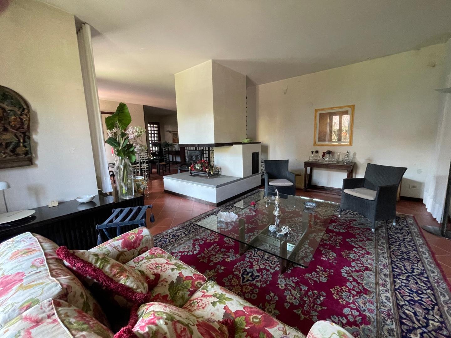 Varcata la soglia, si viene accolti da una zona living di ampio respiro, caratterizzata da altezze importanti e grandi vetrate che fondono gli spazi interni con il verde circostante, marchio di fabbrica di una progettazione deccellenza.