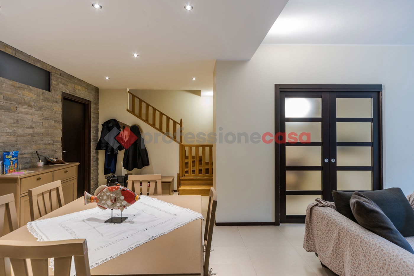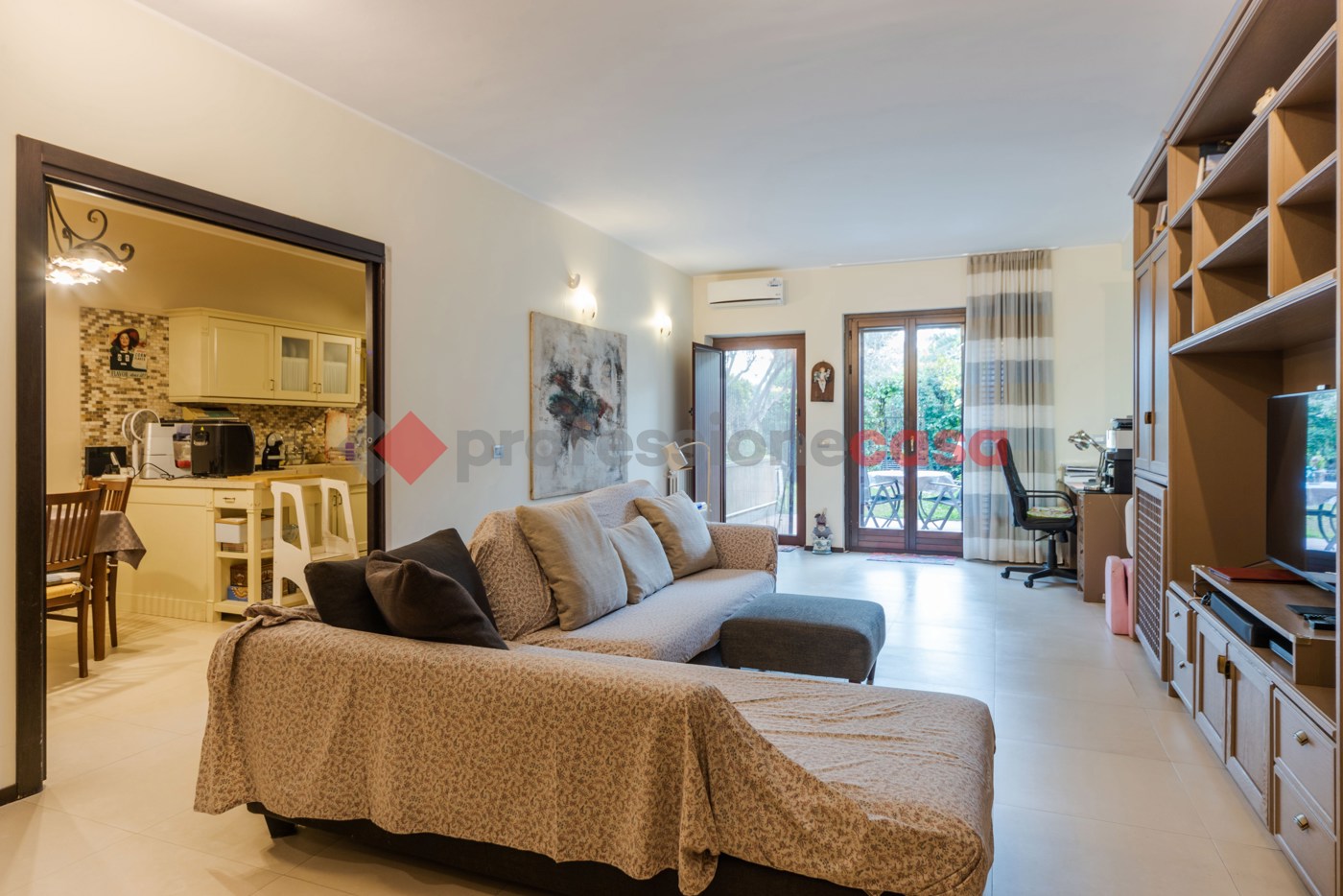 La zona living molto spaziosa, con annessa cucina abitabile, un servizio, una lavanderia ed un ampio vano cantina da utilizzare come stanza ospiti o sala hobby.